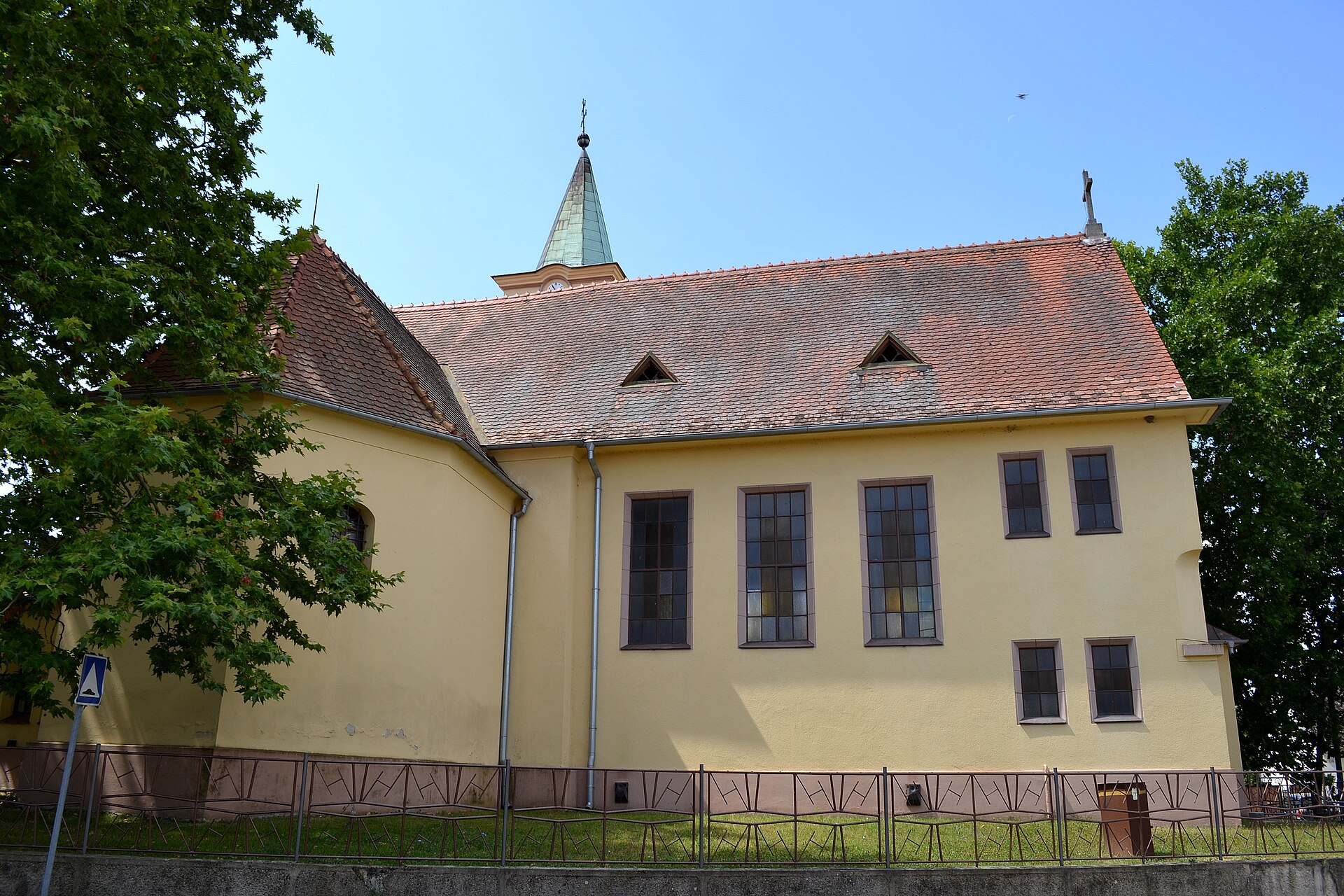 Presbytérium pôvodného kostola, ktoré sa po prestavbe roku 1937 stalo bočnou kaplnkou orientovanou na východ, je polygonálne uzavreté, má valenú klenbu s lunetami a jedno pole krížovej hrebienkovej klenby. Nová loď, stavaná priečne k pôvodnej stavbe, má kazetový strop. Na západnej strane kostola je predstavaná pôvod náveža členená cizénami a nárožnou bosážou, krytá ihlancom. Vnútorné zariadenie kostola je súčasné s novou stavbou kostola. Oltár pôvodného presbytéria (teraz bočnej kaplnky) je klasicistický s obrazom sv. Ladislava, z druhej polovice 18. storočia.
