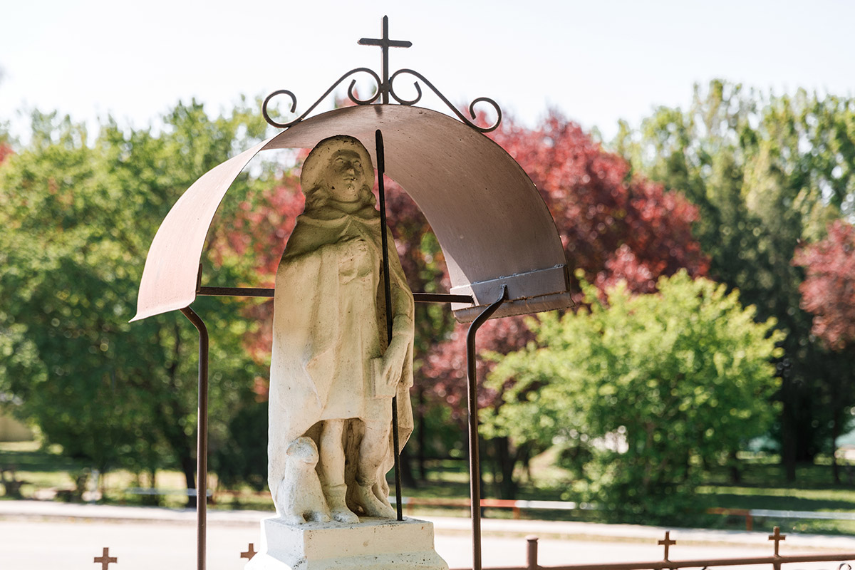 The oldest statue in the church garden is a cross from 1657, renovated in 1989. Additionally, there is a statue of St. Wendelin from the second third of the 19th century and a statue of St. John of Nepomuk from 1838.
