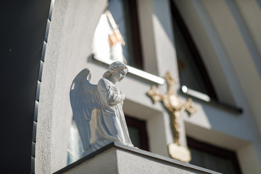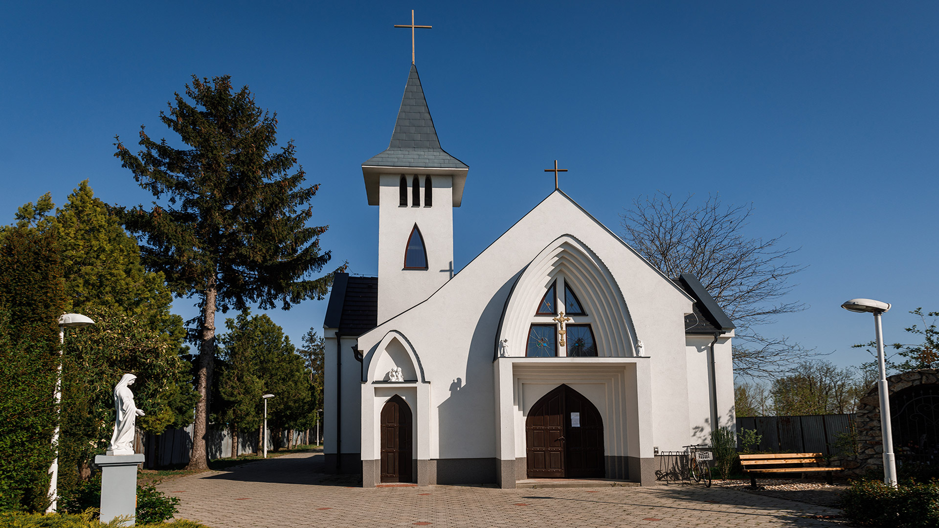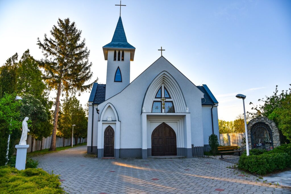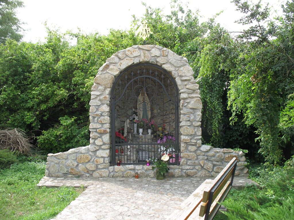 The Roman Catholic Church dedicated to the Name of the Virgin Mary was built in 1954. Its main altar dates back to 1859. Between 1998 and 2004, the church was rebuilt, expanded with a tower and sacristy, and its previously constructed sections were completely renovated, except for the altar. Following the reconstruction, it was consecrated in September 2004 by Ján Orosch, Auxiliary Bishop of Bratislava–Trnava. Next to the church is the Lourdes Grotto.