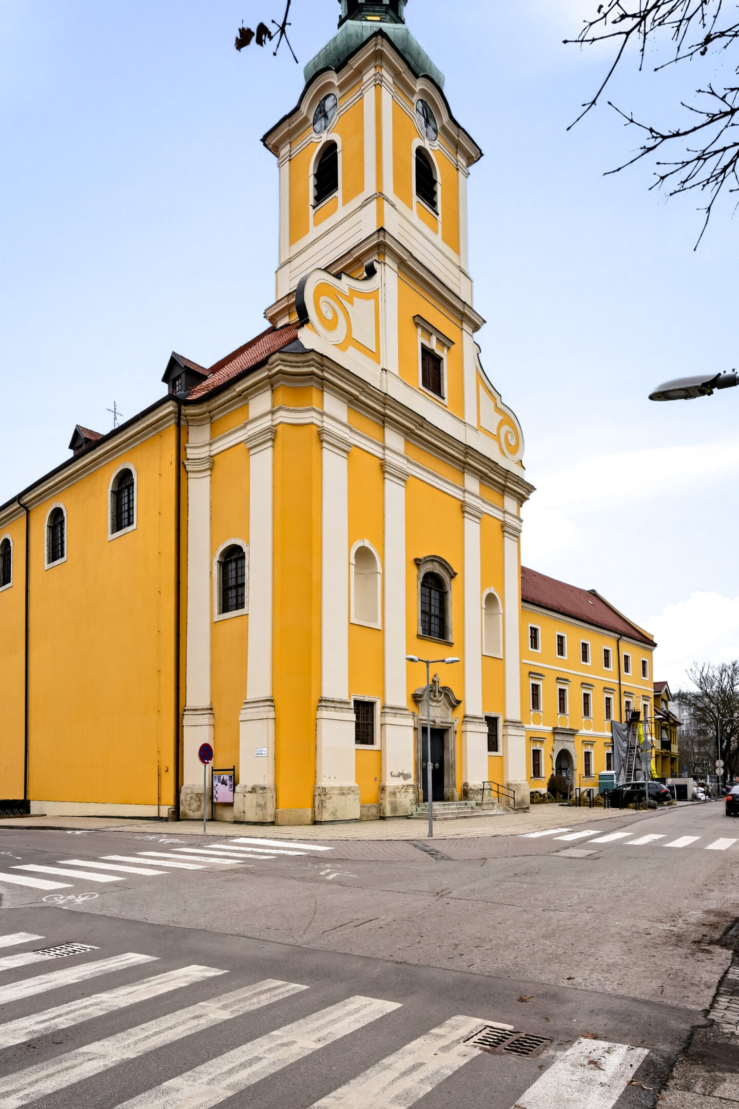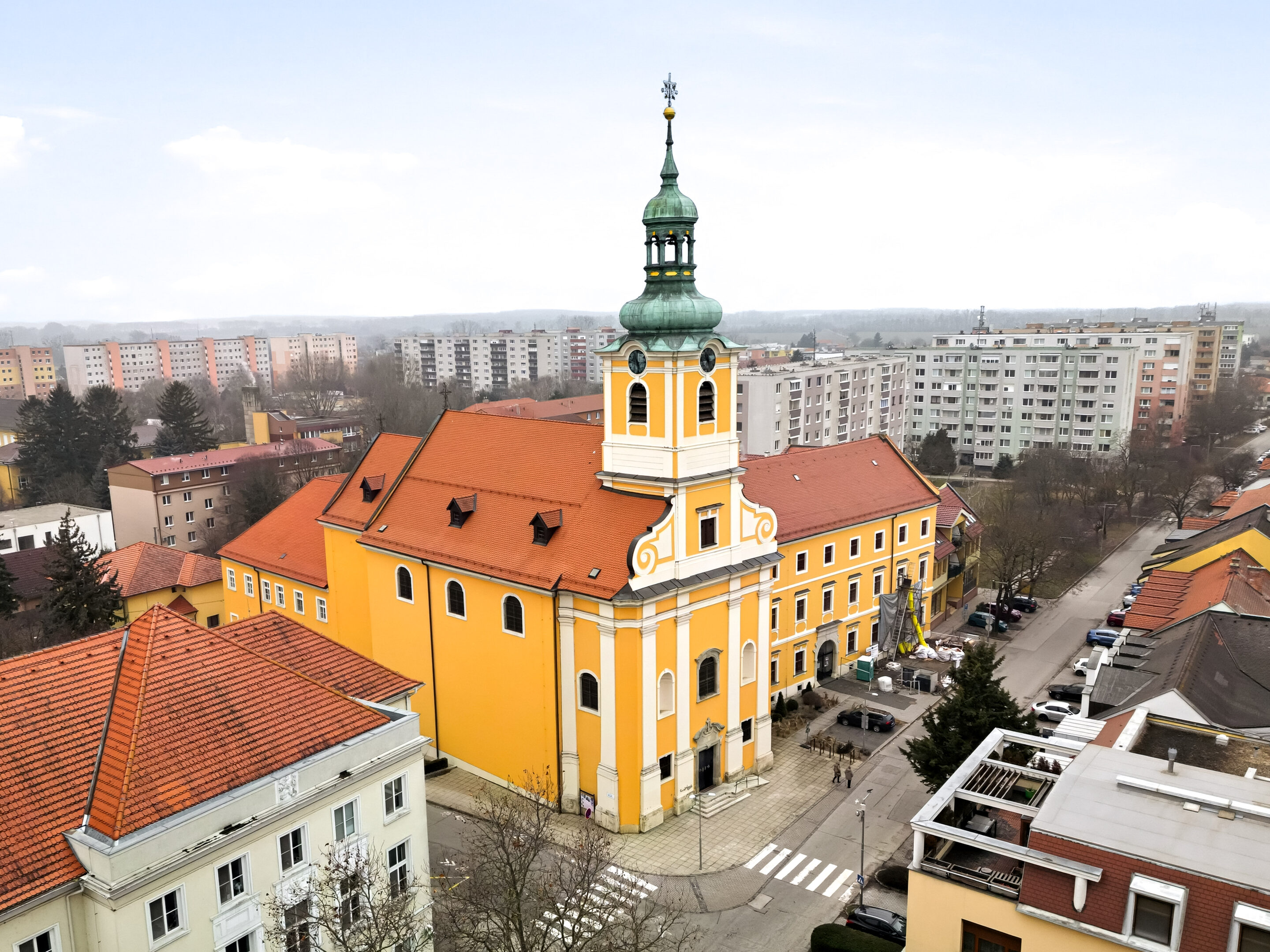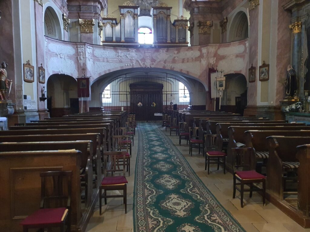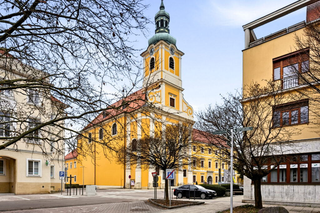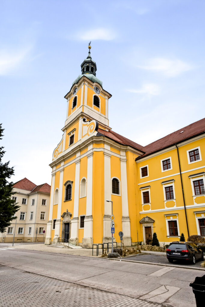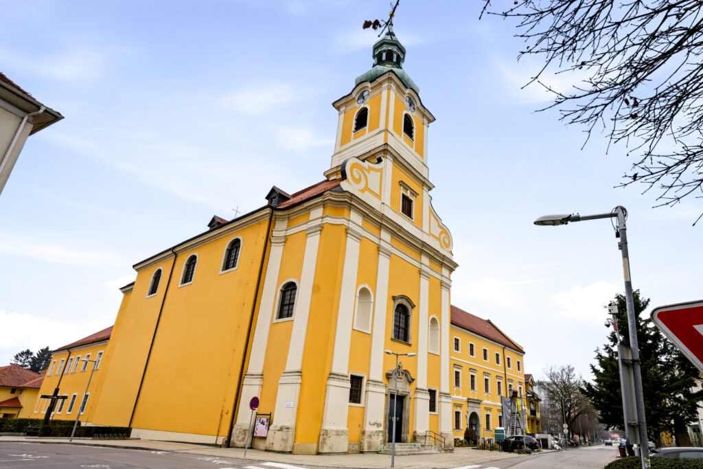 The Church of the Assumption of the Virgin Mary and the associated monastery were built between 1722 and 1778 according to the plans of J. G. Altenburger. The church and monastery built by the Paulans are significant works of late Baroque architecture. The church building is single-nave, with a segmentally vaulted sanctuary. Its tower is integrated into the main façade. Its interior walls and vault are adorned with frescoes and decorated artistic paintings. These are primarily works by F. Sogrist from 1778, which capture moments from the life of Saint Francis of Paola.