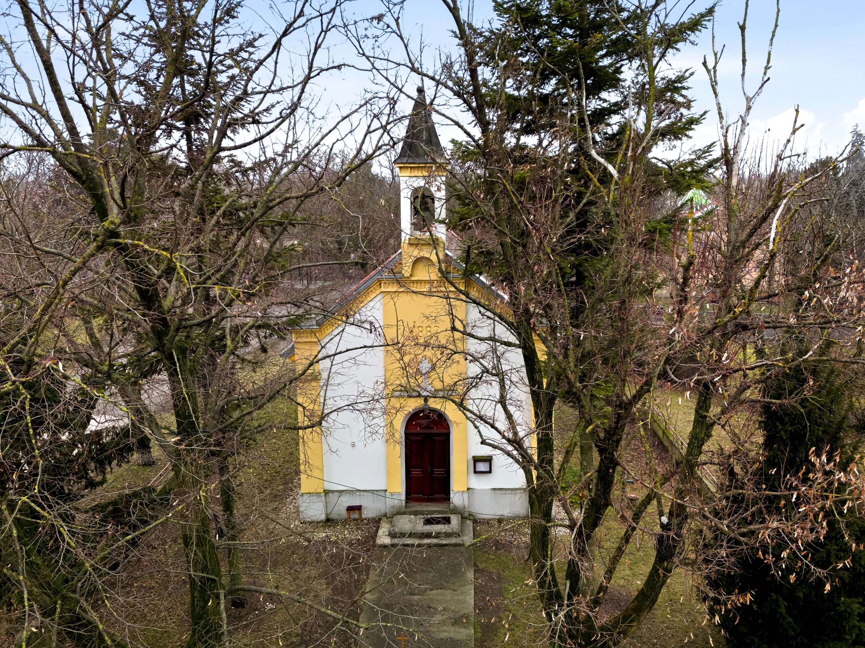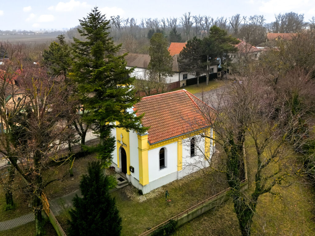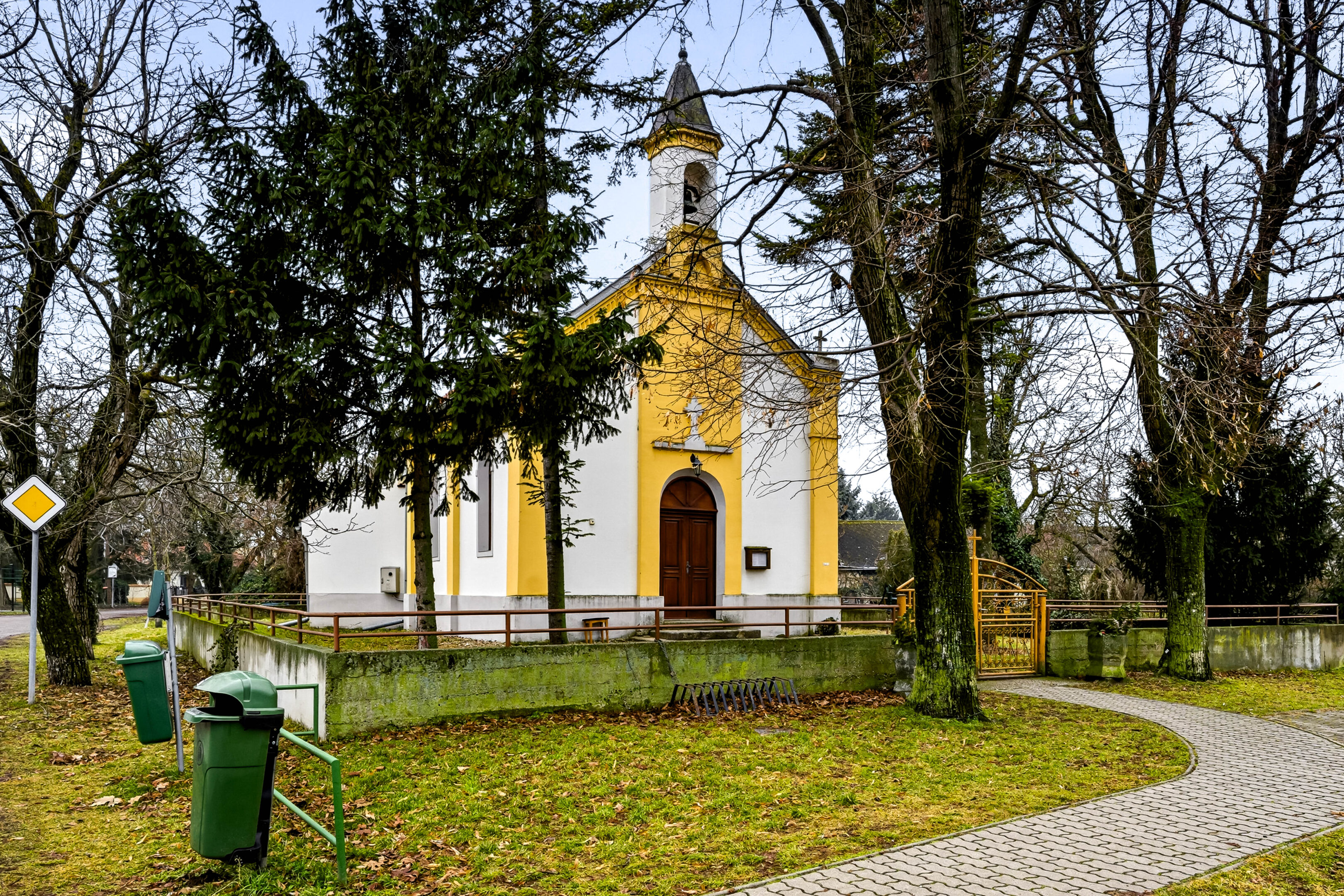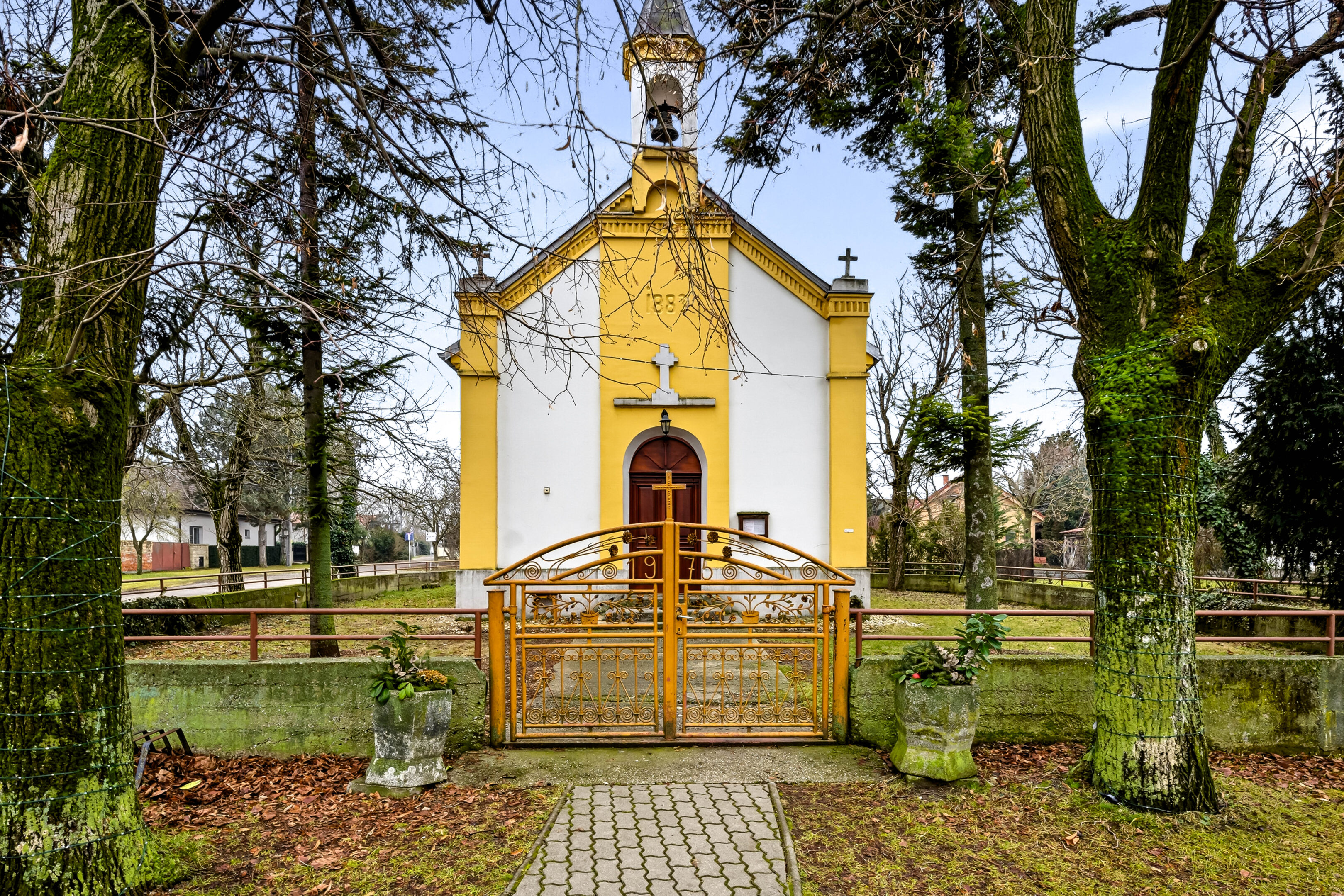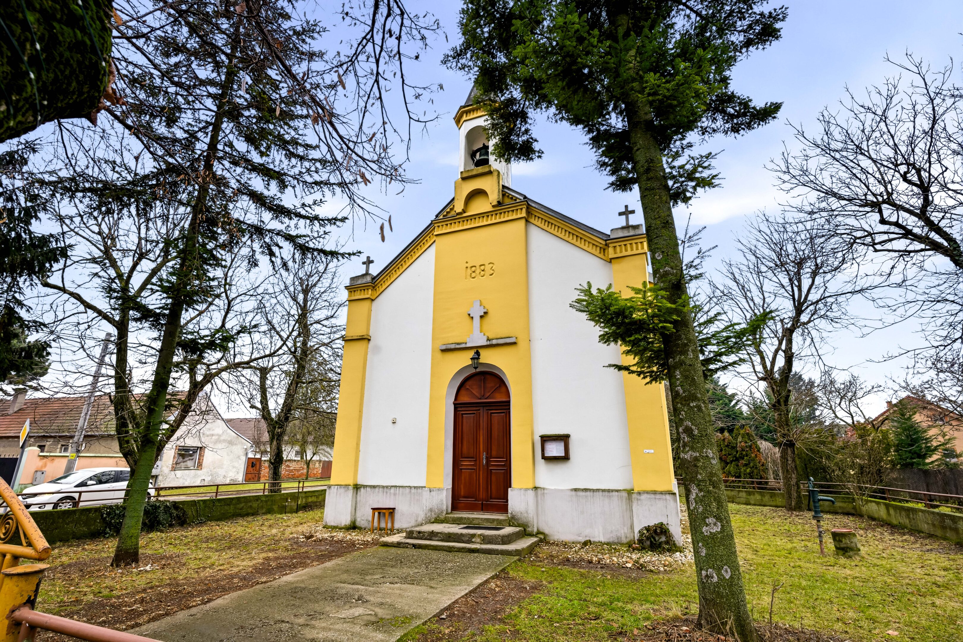 A church mentioned in the list of Archbishop Péter Pázmány is documented by records as early as 1390. This was a Gothic church that likely vanished during the Turkish wars. Neither its exact location nor its appearance is known. On the square in the Uzor district stands the Roman Catholic Chapel of the Assumption of the Virgin Mary, built in 1883 in the Neoremanesque style with Neogothic elements. It is a single-nave building with a polygonal apse, featuring a pointed vault with transverse ribs. The gabled facade is topped by a small built-in turret housing one bronze bell. The facades are divided by pilaster strips (lesenes), windows with framed surrounds and three keystones, and a prominent multi-band Neoremanesque cornice. The main facade features a stylized arched frieze. A sacristy is attached to the chapel. The main altar is contemporary with the building’s construction, featuring a polychrome sculpture of the Madonna in a niche above it.