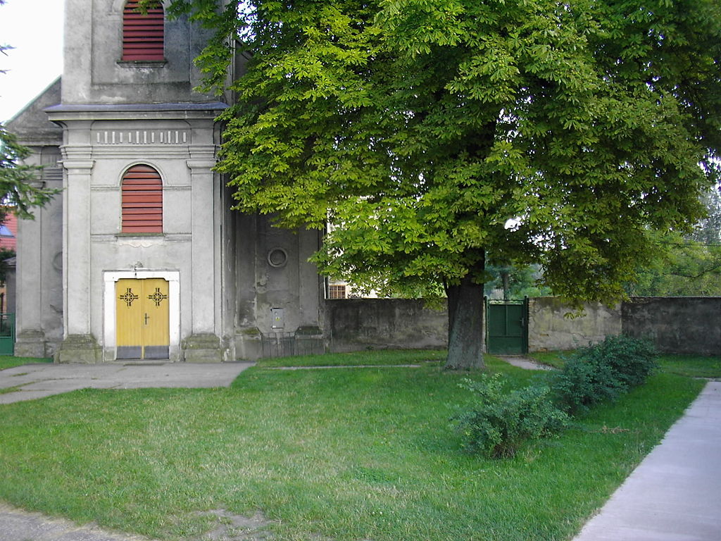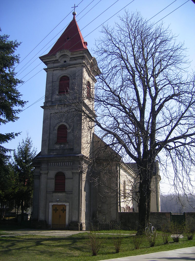 Klasicistický kostol z prvej polovice 19. storočia. Podľa iného zdroja bol objekt vybudovaný v polovici 18. storočia a v polovici 19. storočia bol iba klasicisticky prestavaný. Jednoloďový kostol s polygonálnym uzáverom presbytéria a predstavanou vežou, na severnej strane presbytéria pristavaná sakristia – dnes kaplnka Panny Márie. Presbytérium je zaklenuté pruskou klenbou, v lodi je rovný strop. Fasády sú členené polkruhovo zakončenými oknami. Začiatkom 20. storočia bola pred štítové priečelie pristavaná veža. Veža má na nároží pilastre s rímsovou hlavicou s úsekom náklady a s triglifmy zakončená je ihlancom. Kedysi mal objekt vstupný portál s kamenným ostením.
