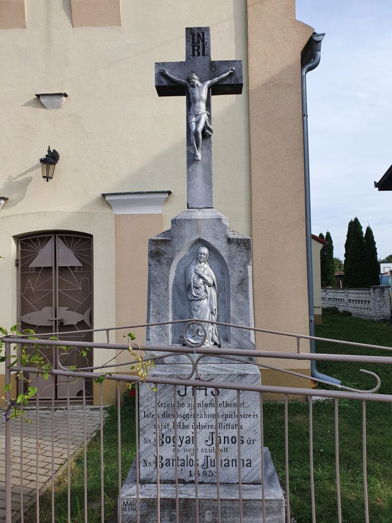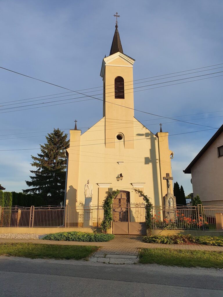 The Roman Catholic Chapel of St. John of Nepomuk in the village of Mad is a single-nave Neoclassical building with a polygonal apse and a tower integrated into its mass, built in 1869. The structure was rebuilt in 1945.