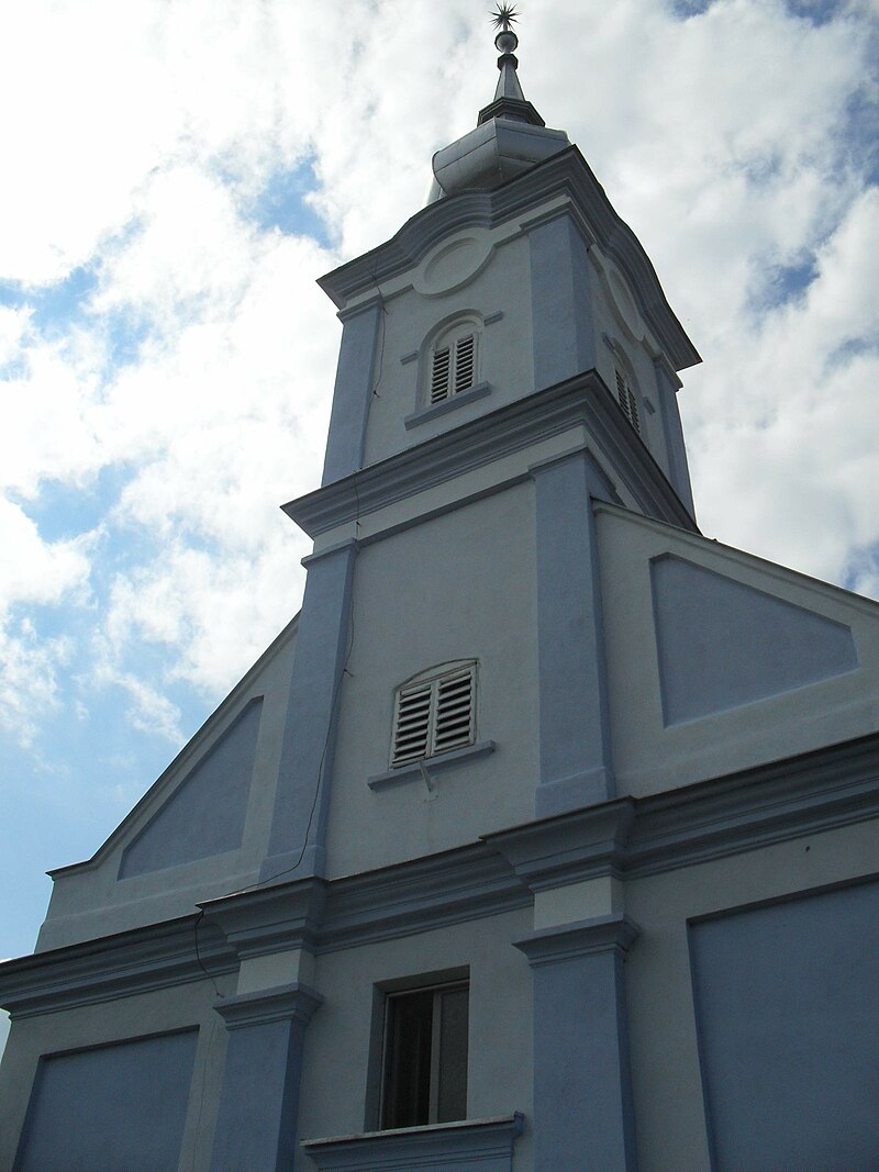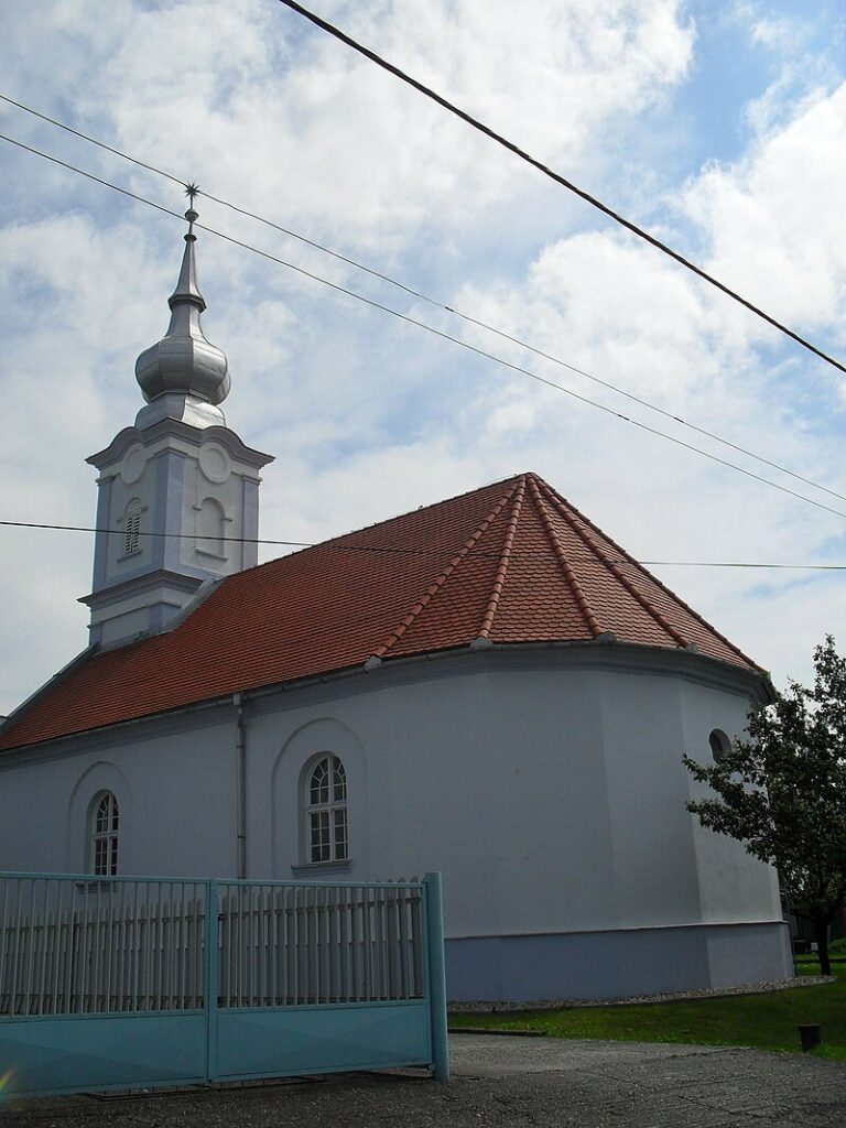 Neskoroklasicistický kostol postavený v roku 1855. Sieňový priestor so segmentovým uzáverom, krytý rovným stropom so štukovým kruhom uprostred. Vo fasáde, členenej pilastrami s rímsovou hlavicou a kordónovou rímsou, je segmentovo zakončený vstup s klenákom, v ktorom je letopočet datujúci stavbu. Vstavaná veža je členená nárožnými pilastrami a kordónovou rímsou, krytá baňou. Vnútorné zariadenie je z čias stavby kostola.
