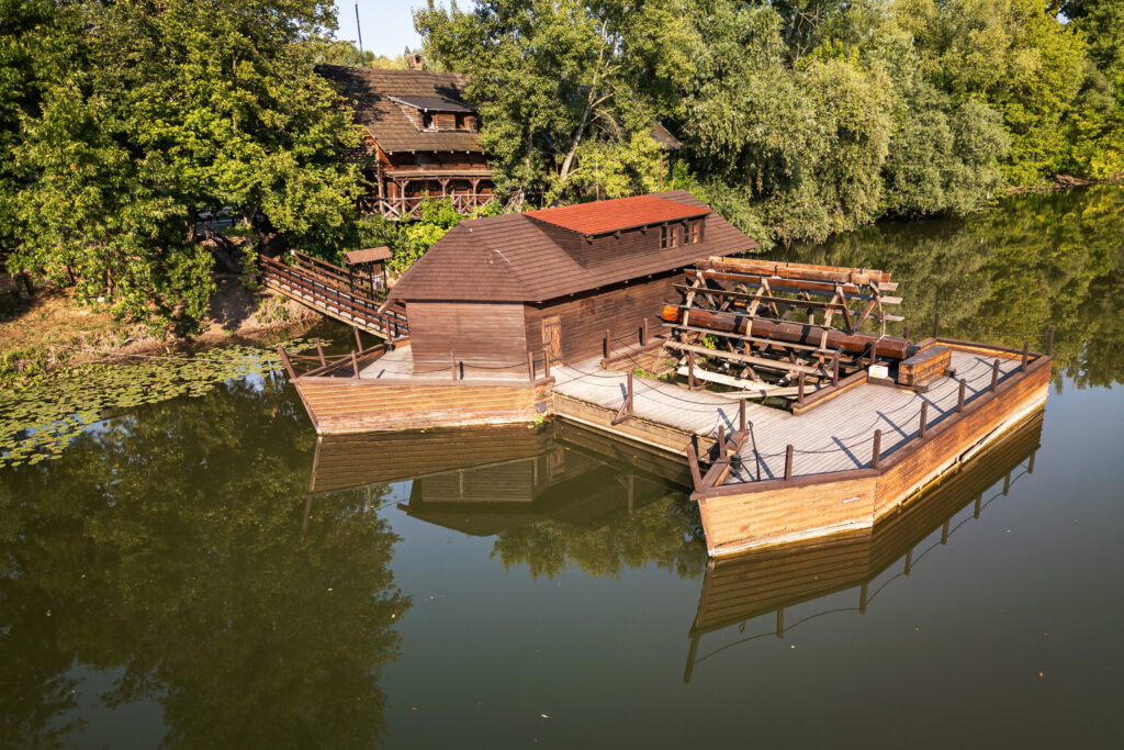 Mlyn má pevnú konštrukciu, aby vydržal nápor jarných ľadov i storočnú vodu. Vedie k nemu 86 m dlhý most, ktorý sa považuje za najdlhší most s drevenou konštrukciou v Európe. Mlyn sa nachádza na obľúbenej vodáckej trase Malým Dunajom. Rameno Malého Dunaja je tu však zahatané z oboch strán, takže k mlynu sa po vode nedá dostať.