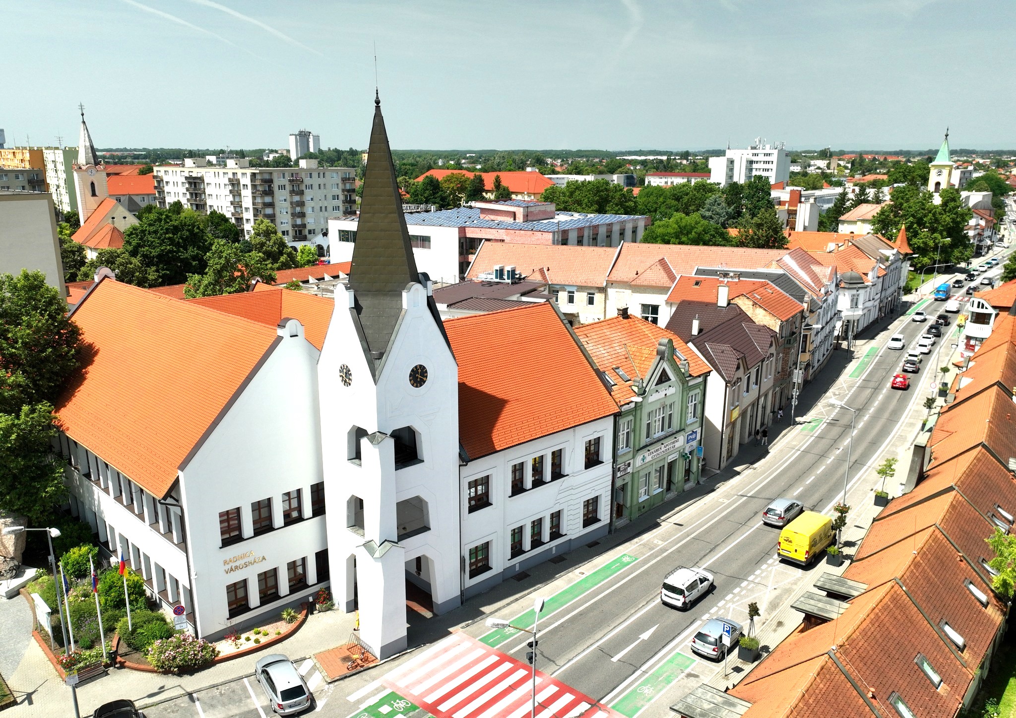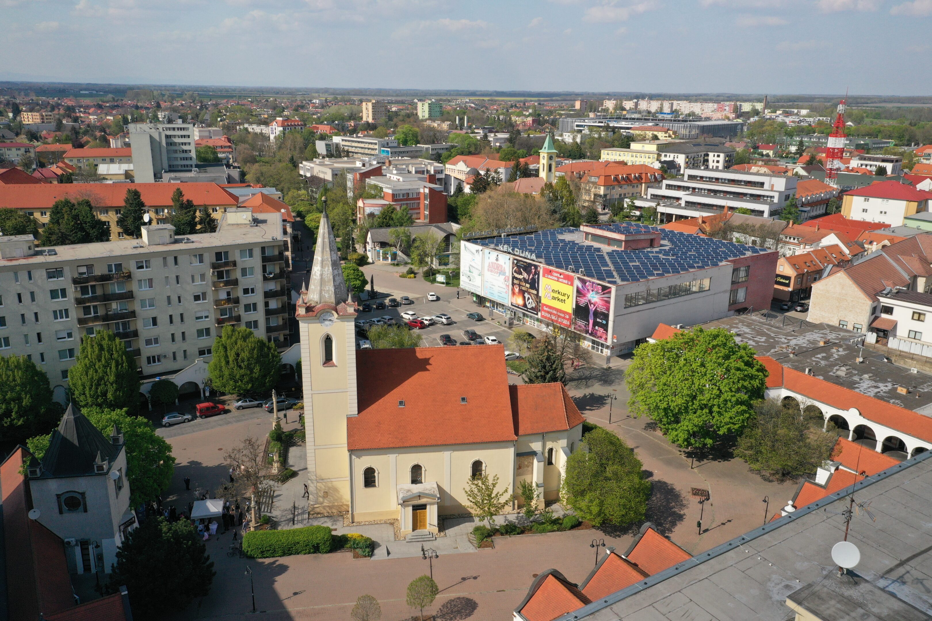Az 1995-ös évben kezdődött a város új arculatának kialakítása, a világhírű építész, Makovecz elképzelései szerint. Az először a Fő utca épületeinek egy részét építették át, majd a városháza egészült ki impozáns toronnyal, illetve a Fontána üzletközpont vendéglői részleggel, majd a Postabank épületkomplexuma került felépítésre – amely épület az egykor az általános egészségbiztosító helyén álló egykori nagy zsinagógát mintázza. Ugyancsak ezt a városszépítési célt szolgálta a Templom-tér újjáépítése is, ahol korábban az egykori óvárost szinte teljesen lebontva paneltömbökkel építették körbe, takarták el a katolikus templomot. A Makovecz-féle elképzelés szerint ezt a lakónegyedi látványt próbálták mérsékelni, itt a téren ugyanis a hagyományos csallóközi építészeti stílusok elevenítődnek fel.