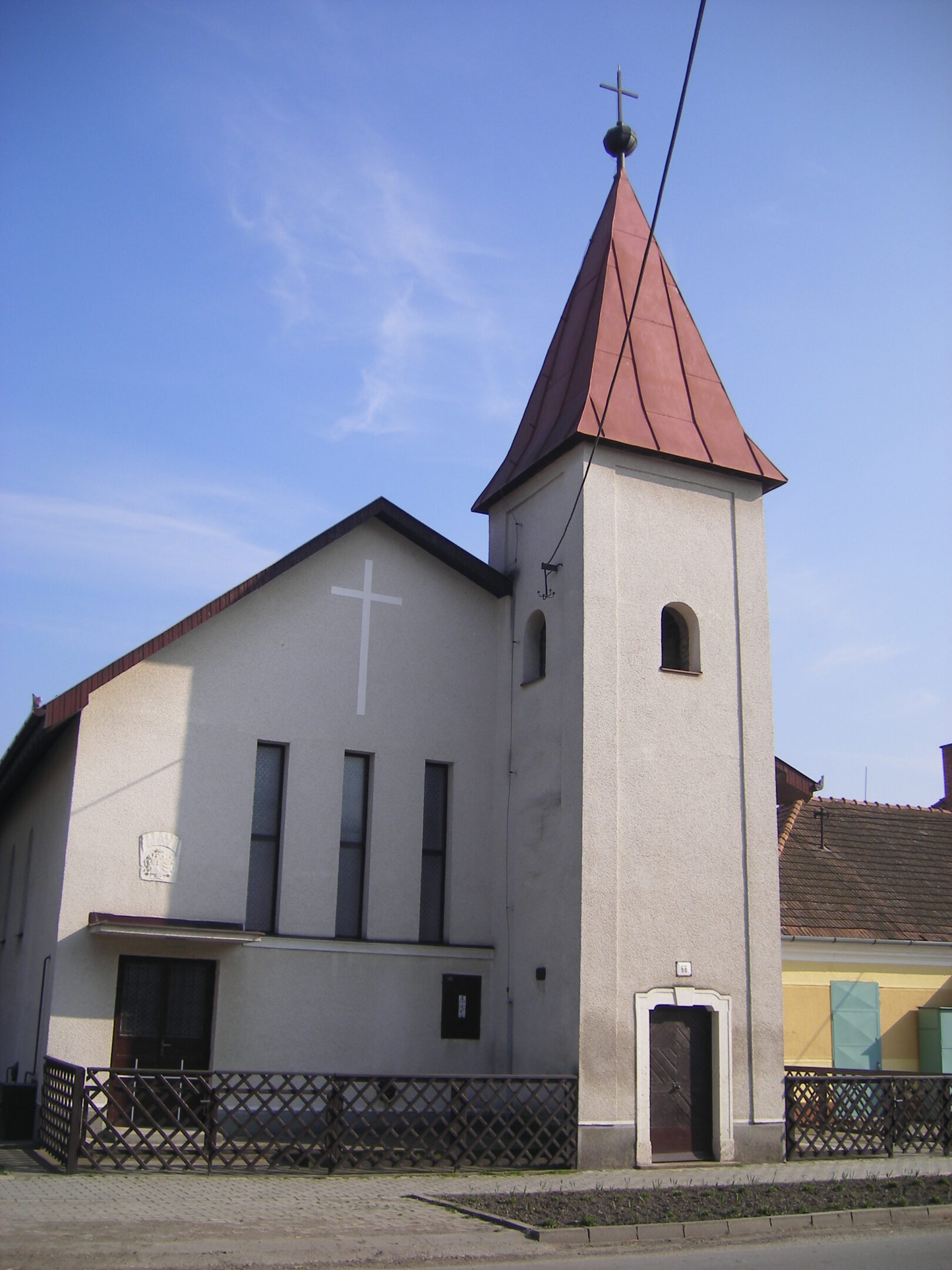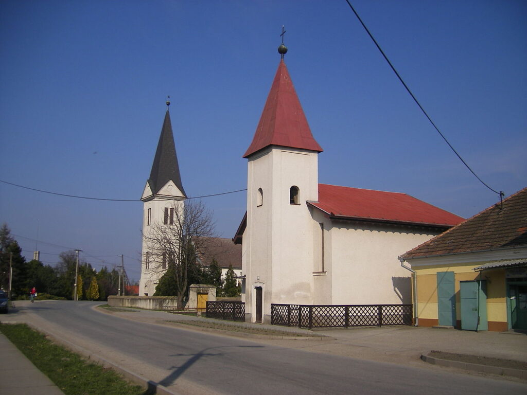 A református templom közvetlen szomszédságában áll. A katolikus vallás kisebb közösségének a 17. századtól kezdve nem volt a faluban temploma, így tagjai kénytelenek voltak a szomszédos falvakba járni istentiszteletre. Csak a 19. században építtetett Ghyczy Rafael egy kisebb templomot klasszicista stílusban. Ezt egy kis folyosó kötötte össze a kastéllyal, ahol a katolikus pap is lakott. A templomot többször átépítették, de a legutóbbi átalakítás radikálisan megváltoztatta a külsejét és belsejét. Megszüntették az egyenes zárású szentélyt az eredeti szegmensíves boltozattal, a bejárati kőportált, a főhomlokzatot tagozó sarokfal sávokat, az összekötő folyosót, valamint az eredeti templombelsőt. 1989 és 1993 között egy csaknem új famennyezetű templom épült. Csak a hegyes sátortetővel fedett eredeti torony maradt meg, továbbá a Ghyczyek síremlékei és a 19. század első feléből származó orgona a karzat könyökrészén. A templom főoromzatába van befalazva a kastélyba vezető egykori kapu boltíve, amely a 18. század második feléből ered, valamint Amade Tádénak és feleségének, Nyáry Angélának a címere. A toronyban két harang van, amelyet a komáromi Dosztál cég 1926-ban öntött. A templombelső berendezése korszerű, hiszen a régi oltárt is kicserélték. Az első misét 1994 őszén celebrálták benne.