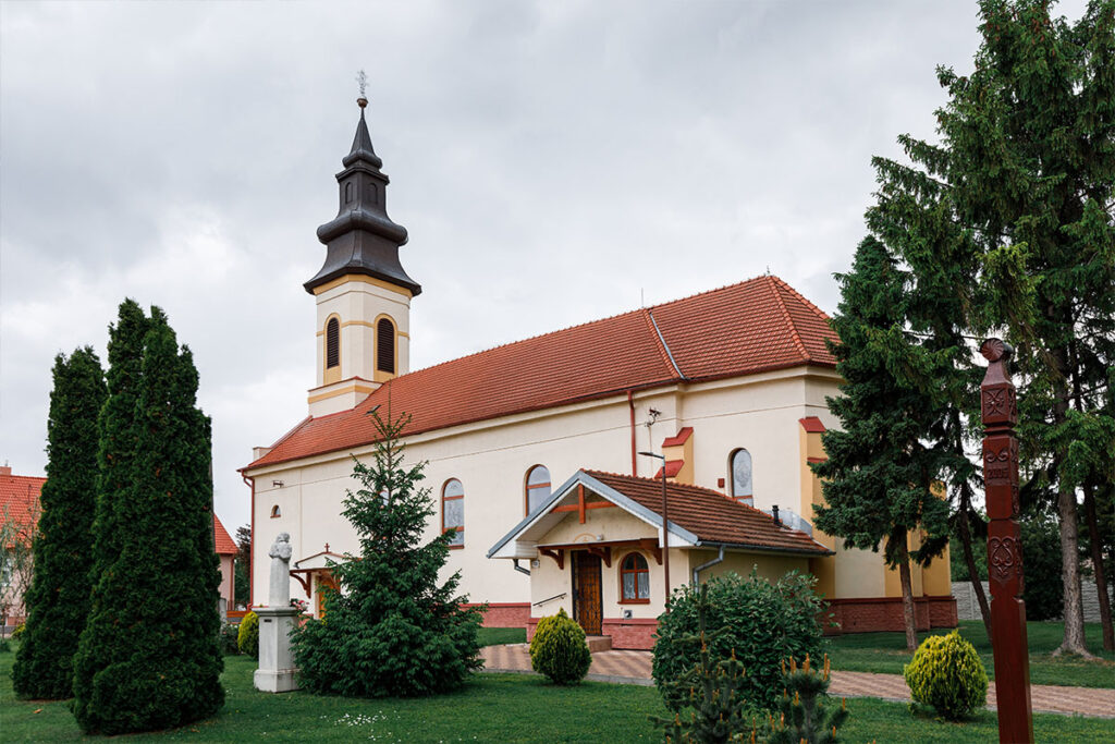 A templom Alsó Nyárasdon, 1754-ben volt felépítve Szűz Mária tiszteletére. A gótikus római katolikus templom később klasszicista stílusra lett átépítve. A kórus előtt mindkét oldalon, jobbra és balra is Krisztus csodatételéről szóló freskók díszítik.A mennyezeten az oltár előtt a hét szentség van ábrázolva, kettő az oldalsó falon. Az oltárral szembeni falon jobbra az utolsó vacsora, balra Szent Péter pünkösdi beszéde, míg az oltáron Szűz Mária születése tekinthető meg. A főoltár bal felén Szent Pál, jobb felén pedig Szent Péter szobra áll. A falfestményeket a 70-es években a Pozsonyi Képzőművészeti Főiskola diákjai festették meg.
