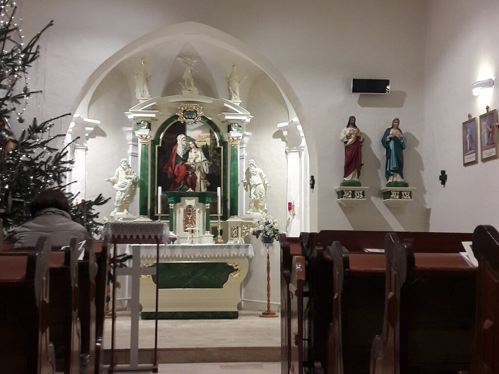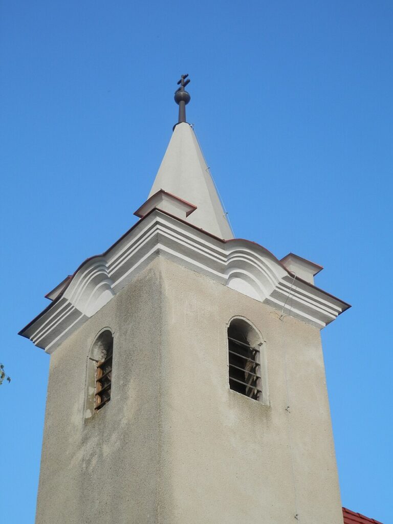Belső terében barokk főoltár található. A középkori részletek közül fennmaradt a szentély déli falán egy résablak, valamint az eredeti pasztofórium fülkéje. A toronyban megőrződött egy kulcslyuk alakú lőrés. Az északi kapu kőkerete zárókövén díszes, rokokó keretbe foglalt szövetségi címer látható. A templom homlokzatai simák, félköríves záródású ablakokkal. A torony koronázópárkánnyal, pajzsocskával és falazott gúla alakú sisakkal zárul.
