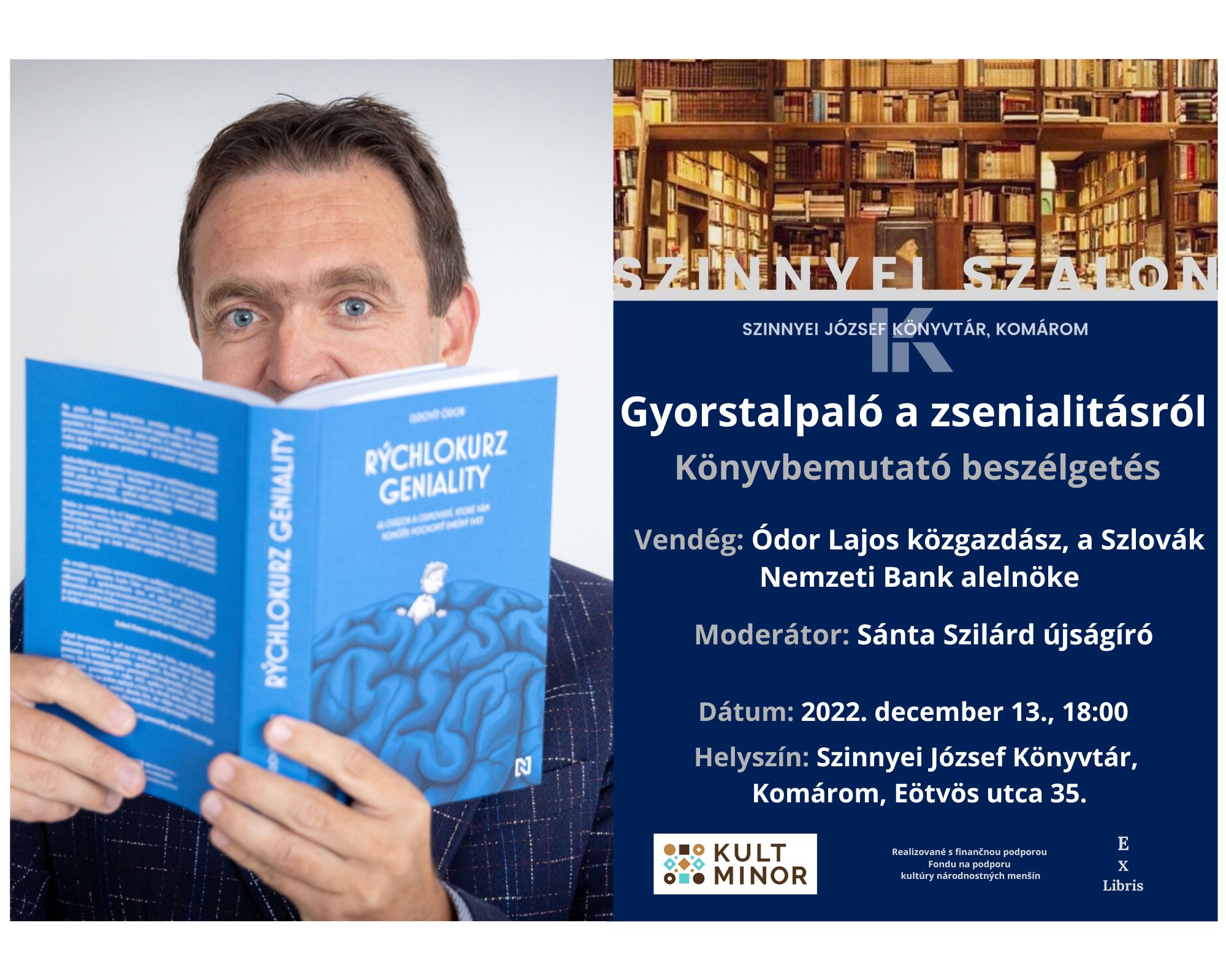 A Szinnyei Szalon soron következő vendégét, Ódor Lajost, legújabb kötetéről Sánta Szilárd kérdezi a könyvtár rendezvénytermében.