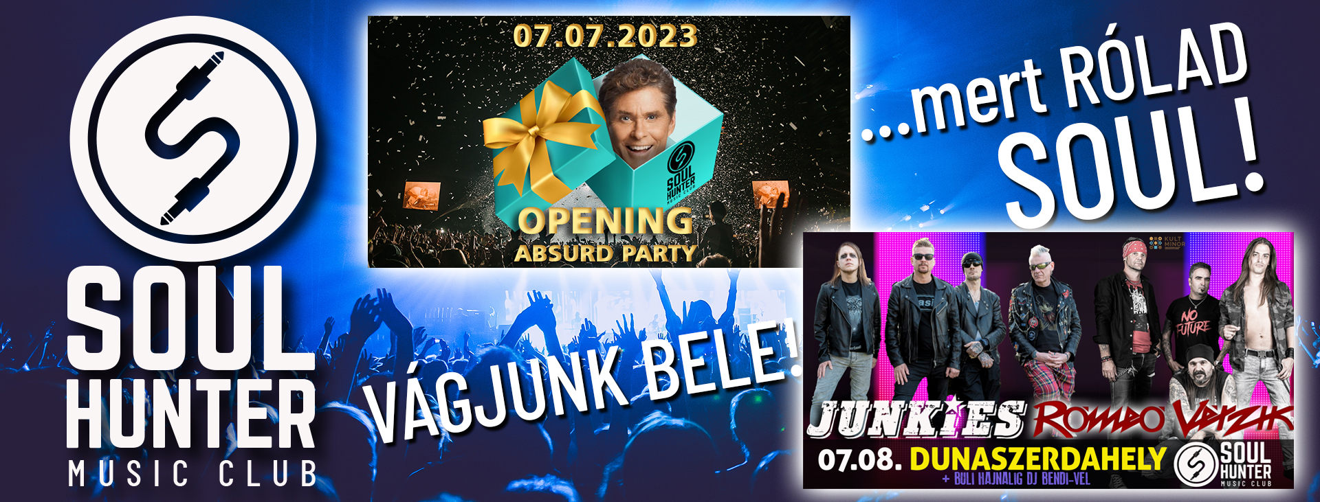 Nyissuk együtt újra a Soul Hunter-t! Indítsuk a nyarat egy 𝗳𝗲𝗿𝗴𝗲𝘁𝗲𝗴𝗲𝘀 partival! Mint mindig az 𝗔𝗕𝗦𝗭𝗨𝗥𝗗 helyzetért 𝗗𝗝 𝗛𝗼𝗳𝗳-𝗠𝗮𝗻 a felelős! Szombaton pedig két legendás rockzenekar egy este alatt a megújult dunaszerdahelyi Soul Hunter Music Clubban. Vár rád a Junkies és a hazai Rómeó Vérzik zenekar koncertje! A koncertek után rockbuli hajnalig DJ Bendivel!