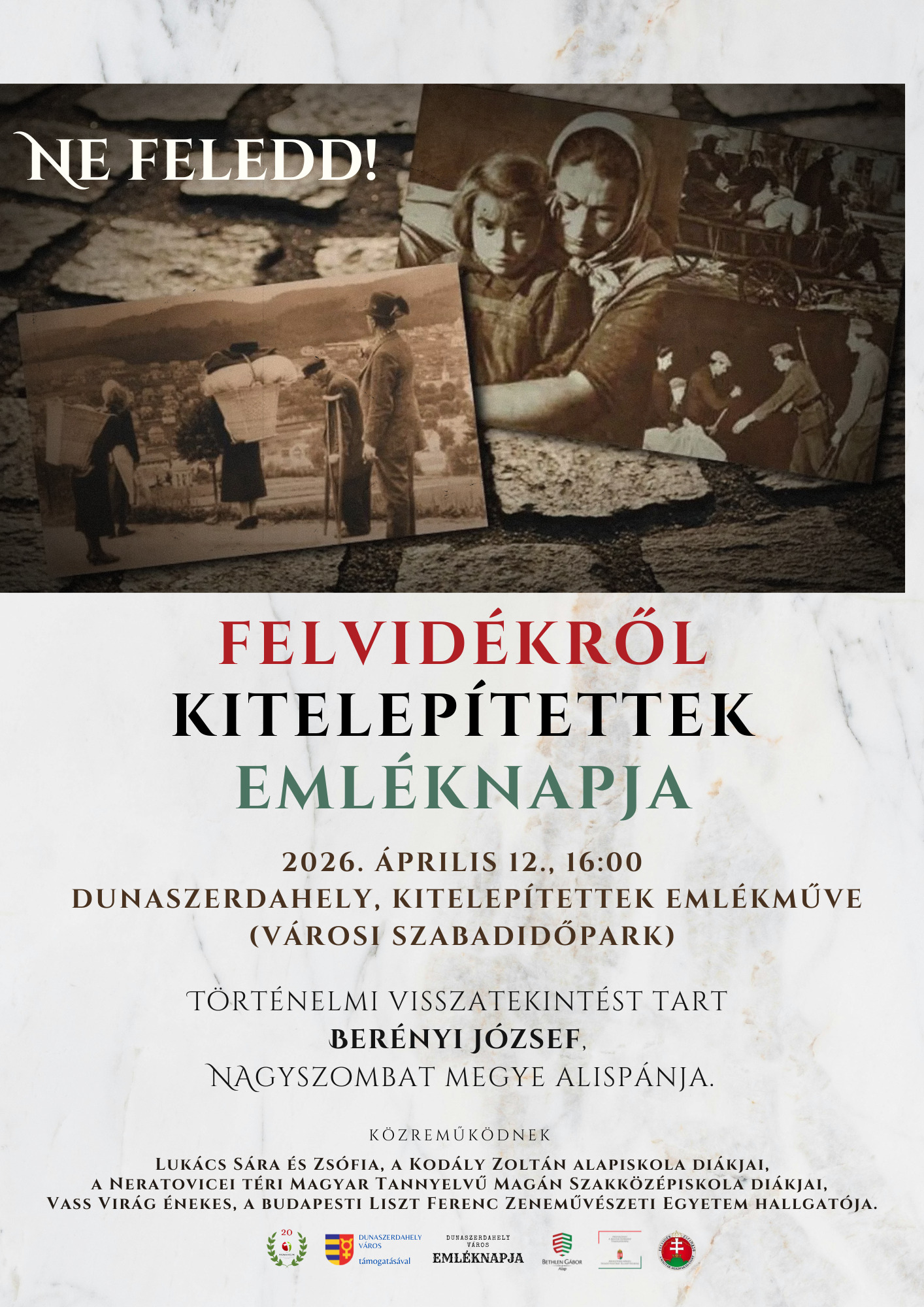 A Magyar Országgyűlés határozata alapján április 12-e a Felvidékről kitelepített magyarok emléknapja. A Pázmaneum Társulás, hagyományaihoz híven, megemlékezést tart 2026. április 12-én, 16 órakor a Városi Sport- és Szabadidőparkban található kitelepített felvidéki magyarok emlékművénél.