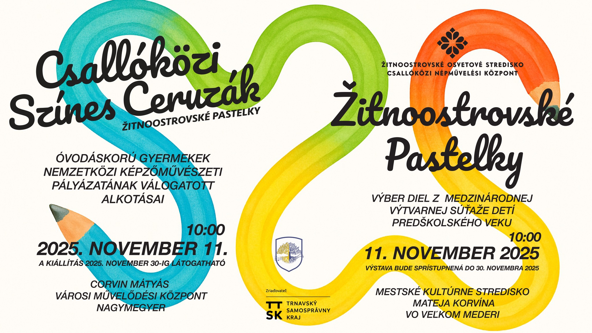 Szeretettel várunk mindenkit 2025. november 11-én 10:00 órakor Nagymegyerre, a Corvin Mátyás Városi Művelődési Központba, ahol megnyílik a Csallóközi Színes Ceruzák című rajzkiállítás. A tárlaton óvodáskorú gyermekek nemzetközi képzőművészeti pályázatának legszebb alkotásait láthatjátok. A kiállítás november 30-ig látogatható.