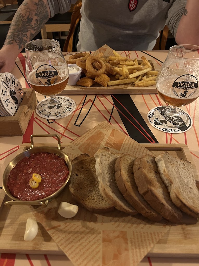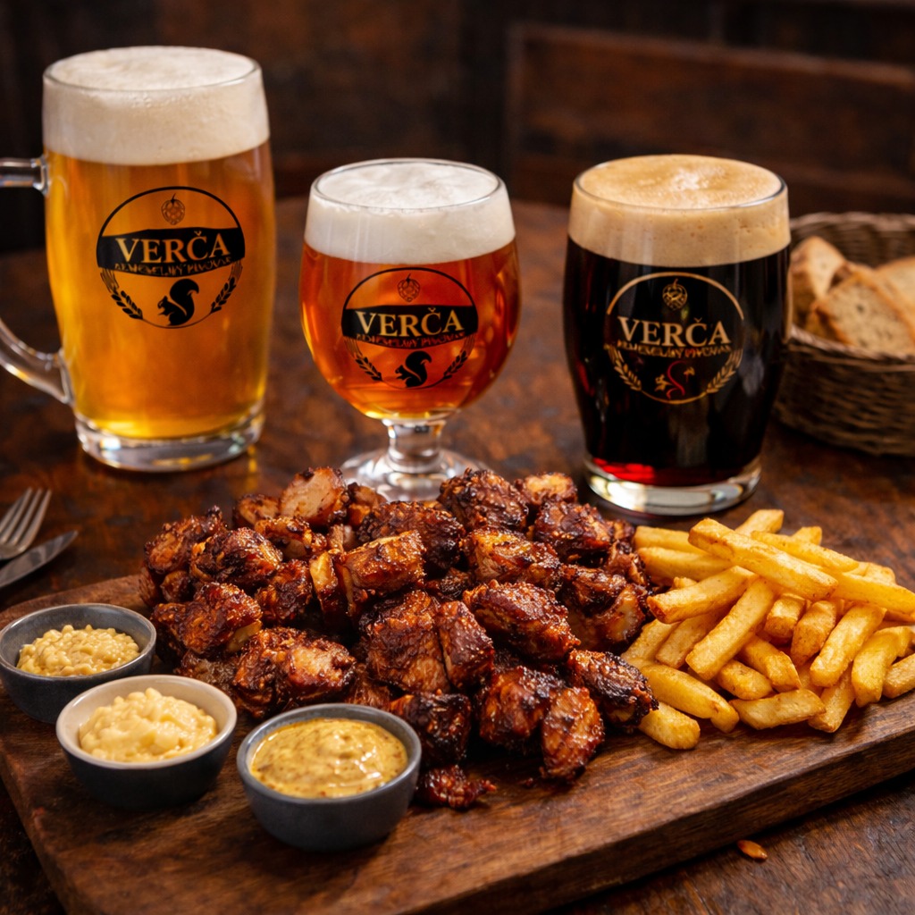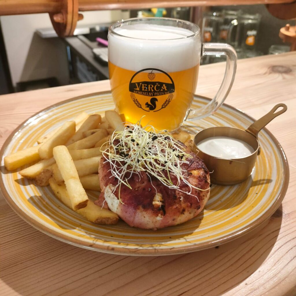 If you love Bavarian and Czech craft beers, you’ve come to the right place. A family-run beer hall with a wide selection of craft beers, where you can enjoy a pint poured by the brewmaster of the Verča brewery 🙂 We offer a total of 8 types of beer from our own production, as well as other Slovak, Czech, and Bavarian beers. We offer ribs, pancakes, pickled sausages, and other delicacies to go with your beer.