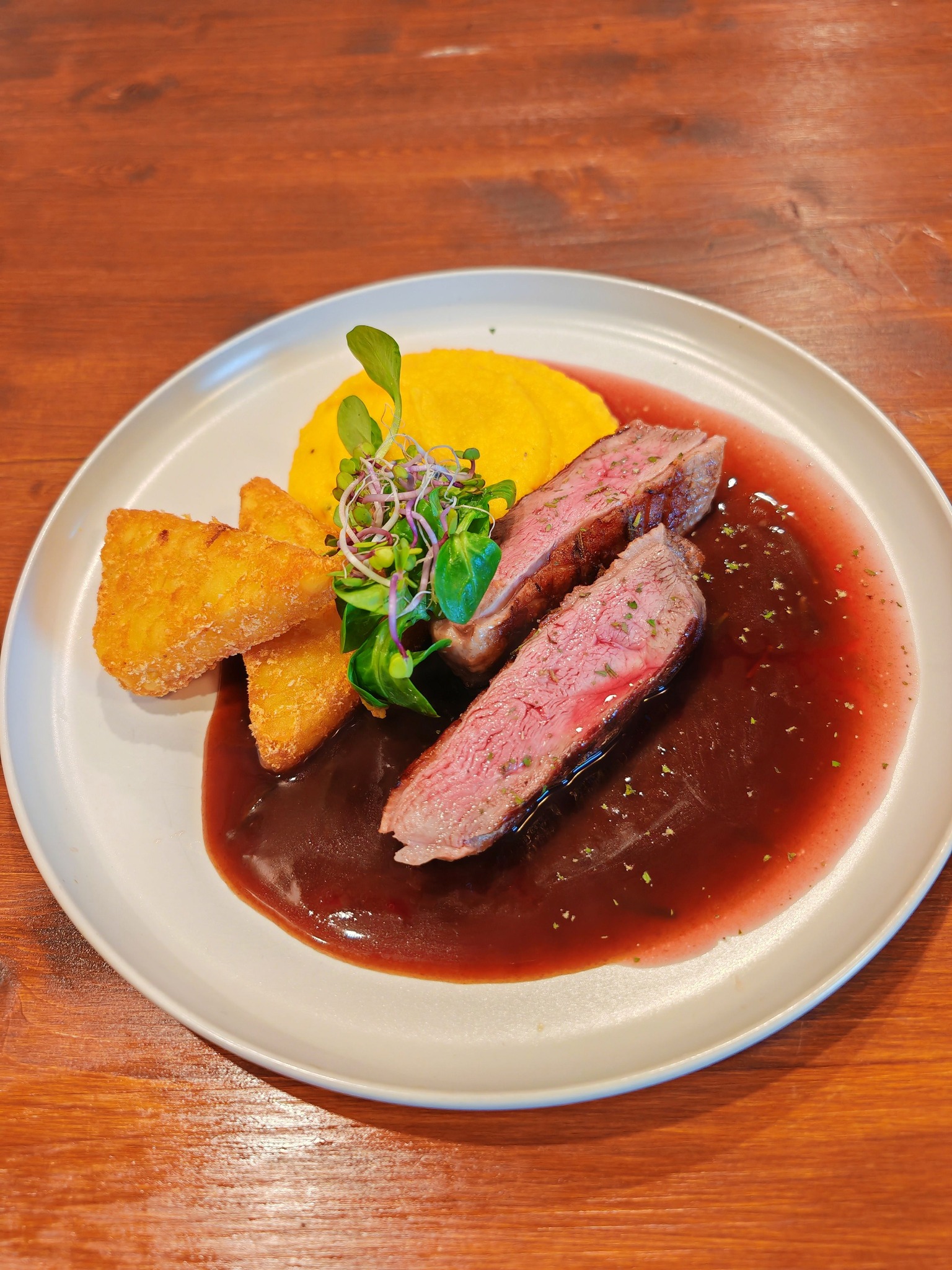We are a restaurant where everyone—from children and parents to sports enthusiasts—can truly enjoy good, hearty food and drinks. When creating our menu, we drew inspiration from two main themes in our food and beverage offerings. High-quality meat for our steaks, burgers, and other meat dishes is a given, but we haven’t forgotten about vegetarians or vegans. Many of you will be delighted by our selection of fish. Beer enthusiasts will certainly appreciate our wide selection of draft beers. We haven’t forgotten about our female guests either, with a diverse selection of wines, mixed drinks, and homemade lemonades. The little ones are sure to love our homemade milkshakes.
