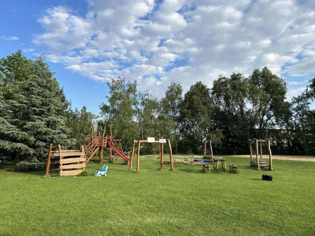 You’re sure to fall in love with the stylish spaces of our air-conditioned restaurant, including the spacious summer terrace, and they’ll become a part of your pleasant family outings, lunches, or evening gatherings. For cyclists, we have plenty of bike racks so their bikes are always ready to hit the road again. Drivers will surely appreciate the parking lot right in front of the restaurant. Your little ones will also have a great time in the restaurant’s playground, featuring a playhouse, a slide, and plenty of other attractions.