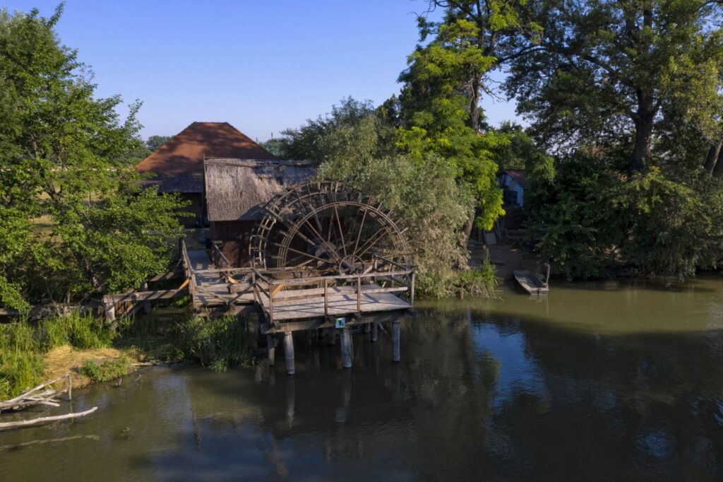 The watermill is a beautiful and unique monument of the Little Danube. In 1905 it was rebuilt from floating mill to wheeled. After a recent reconstruction is open for visitors in full beauty, alongside with a watermill museum. The mill is situated in a pleasant environment with the possibility of refreshments, camping and sports and water activities, and the possibility to park the boats and canoes.