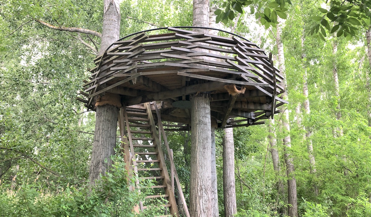 The natural lookout in the unusual shape of the bird’s nest provides a view of the flooded wetlands of the Little Danube. The recreational zone is appreciated mainly by families with children. This place has also become a favourite stopping point when canoeing down the Little Danube. From a height of 7 meters it is possible to observe flooded wetland floodplain forest, beaver dams, climbing hydrangeas, yellow irises and life of water birds in reeds. The wooden footbridge will lead you through the wetlands to the right bridge of the Little Danube, and after a few meters along the footpath you will come to the Green Oasis.
