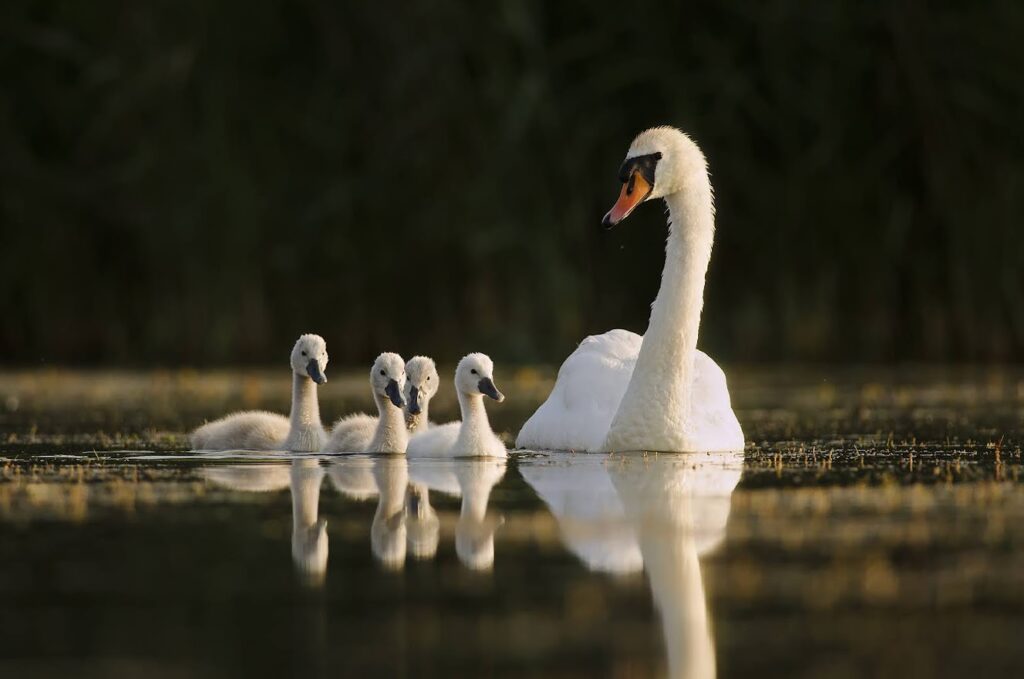 Numerous places on and around the river have an animal names. Several rare and protected animal species live in and around the Little Danube. From mammals are represented by the european otter, muskrat and water nutria, while the birds include the great swan, heron, white stork, river-fish, duck. Amphibians occurring in the area are mainly the Common Frog and the Green Frog.