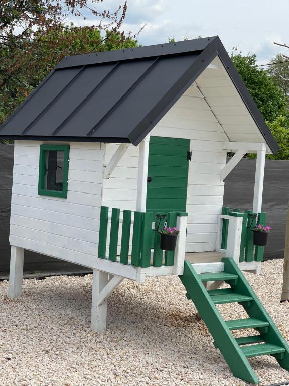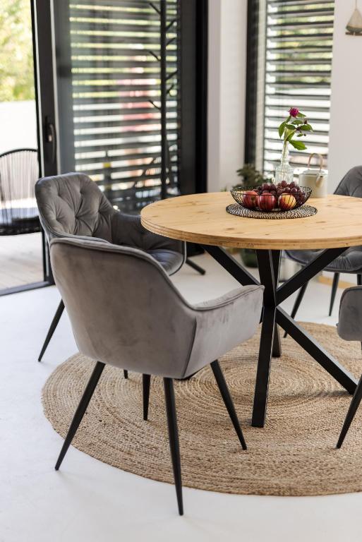 The air-conditioned holiday home includes one bedroom, a living room, a fully equipped kitchen with a refrigerator and a coffee machine, and a bathroom with a shower and free toiletries. Towels and bed linen are provided.