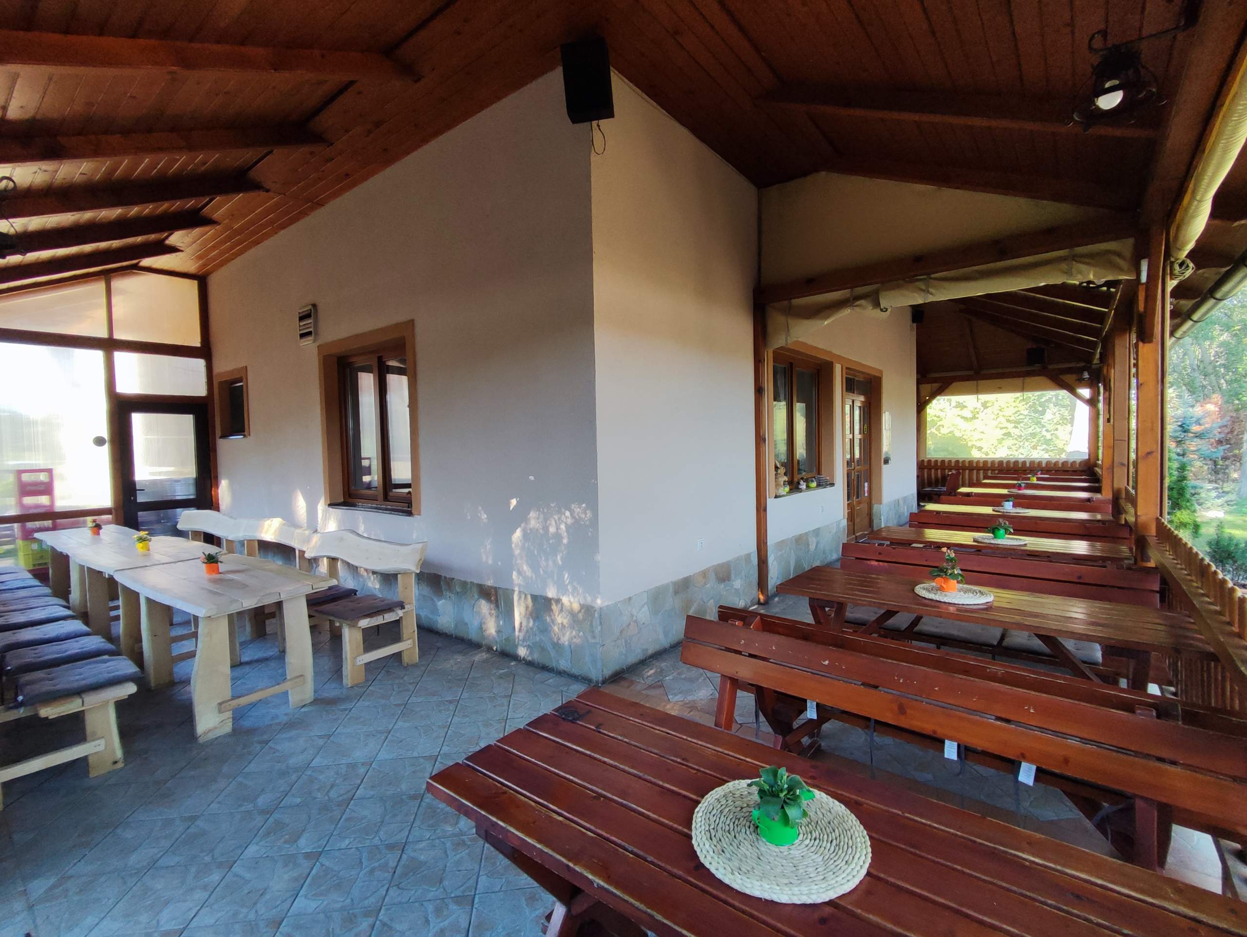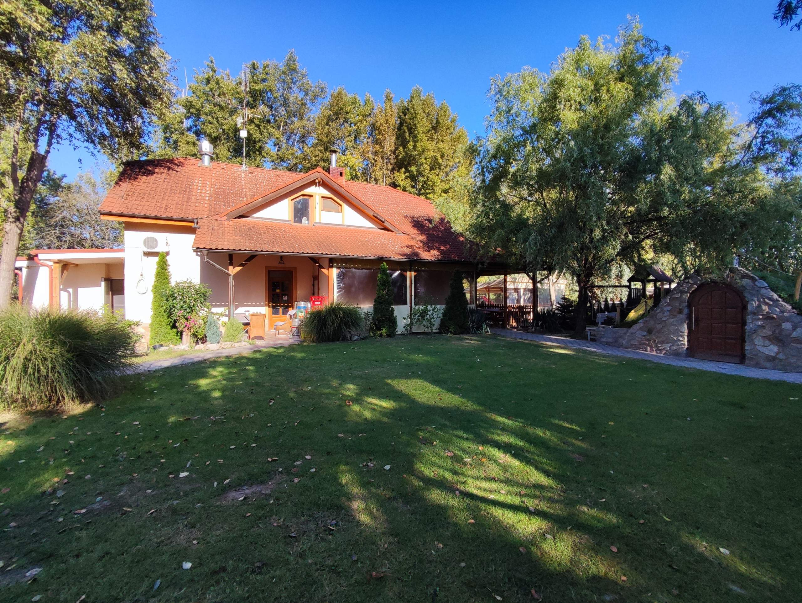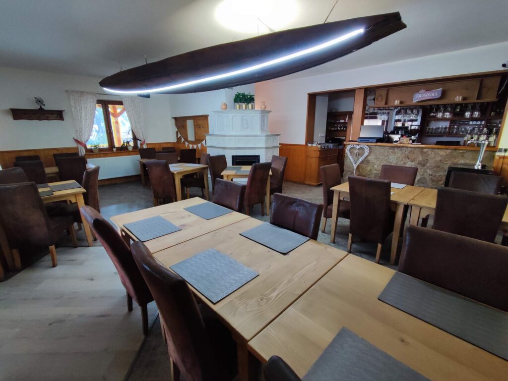 We offer two double rooms with the possibility of an extra bed. Each room is equipped with a TV, a bathroom, and a toilet. It is a wonderful experience to wake up in the morning, open the window, and enjoy the beautiful greenery and the dead arm of the Váh River in our surroundings.