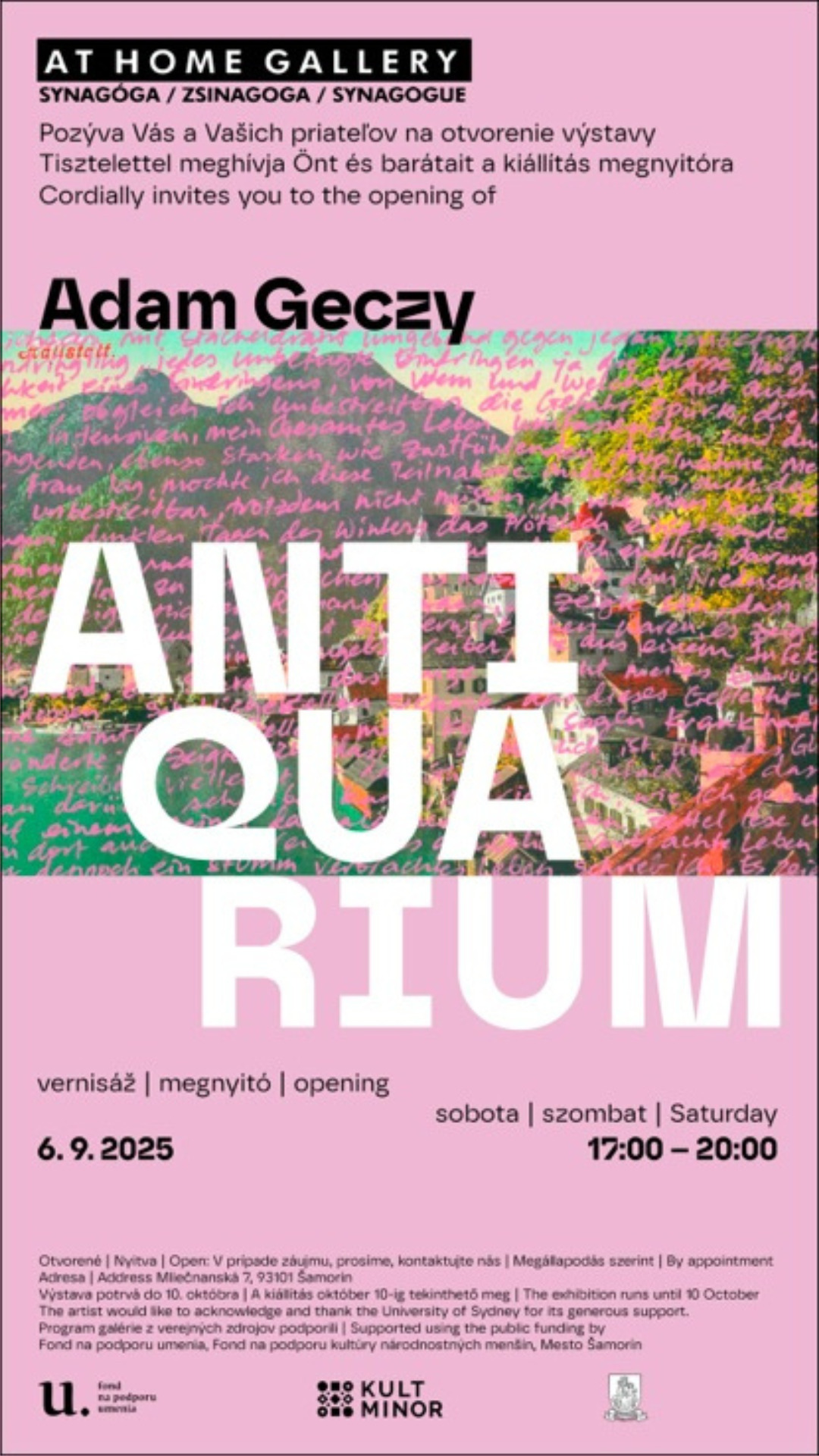 Výstava umelca Adama Geczyho v budove Synagógy, v At Home Gallery.