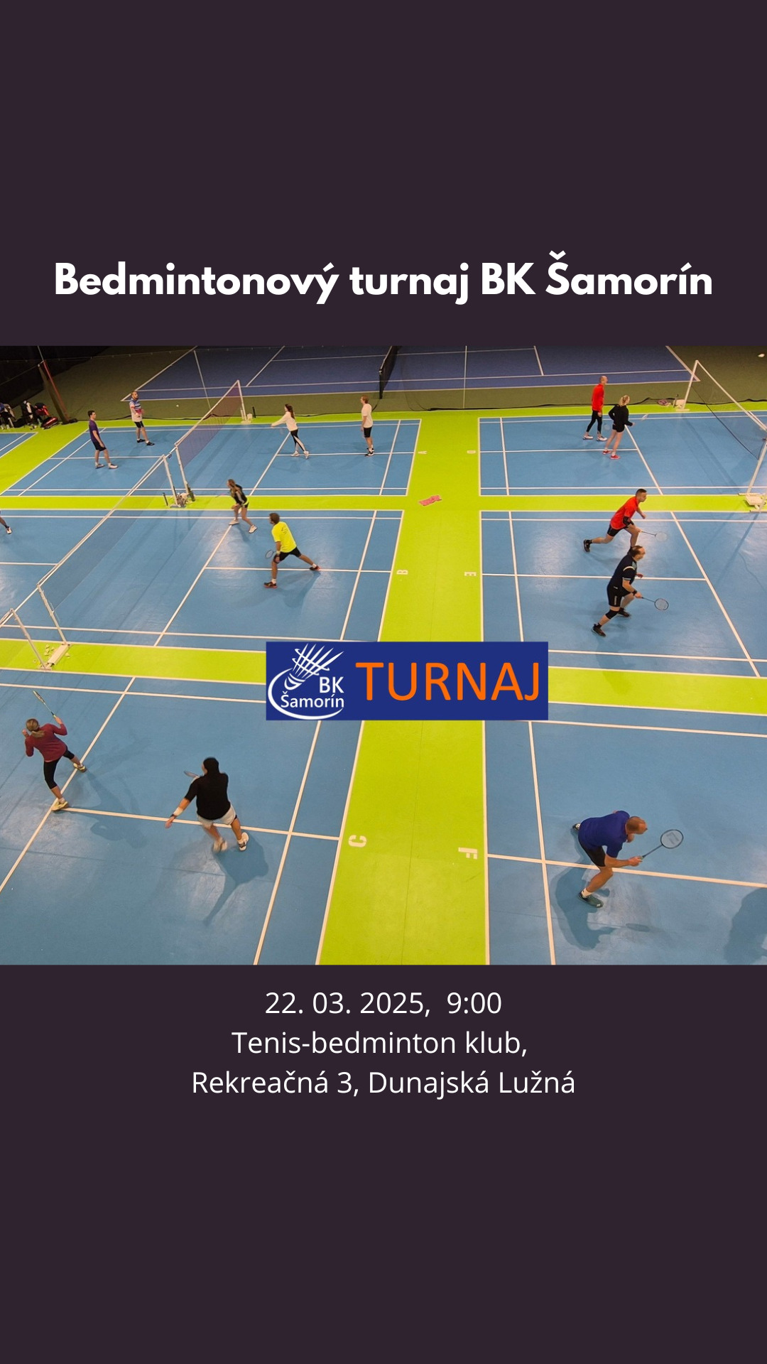 Ďalšie informácie na stránke turnaja: https://www.bedmintonsamorin.sk/turnaj