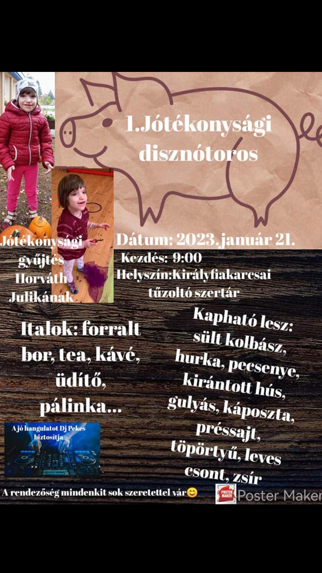 I. Charitatívna zabíjačka bude 21. januára 2023 od 9:00. Miesto: Kráľovičove Kračany, hasičská zbrojnica (Dobrovoľný hasičský zbor Kráľovičove Kračany).