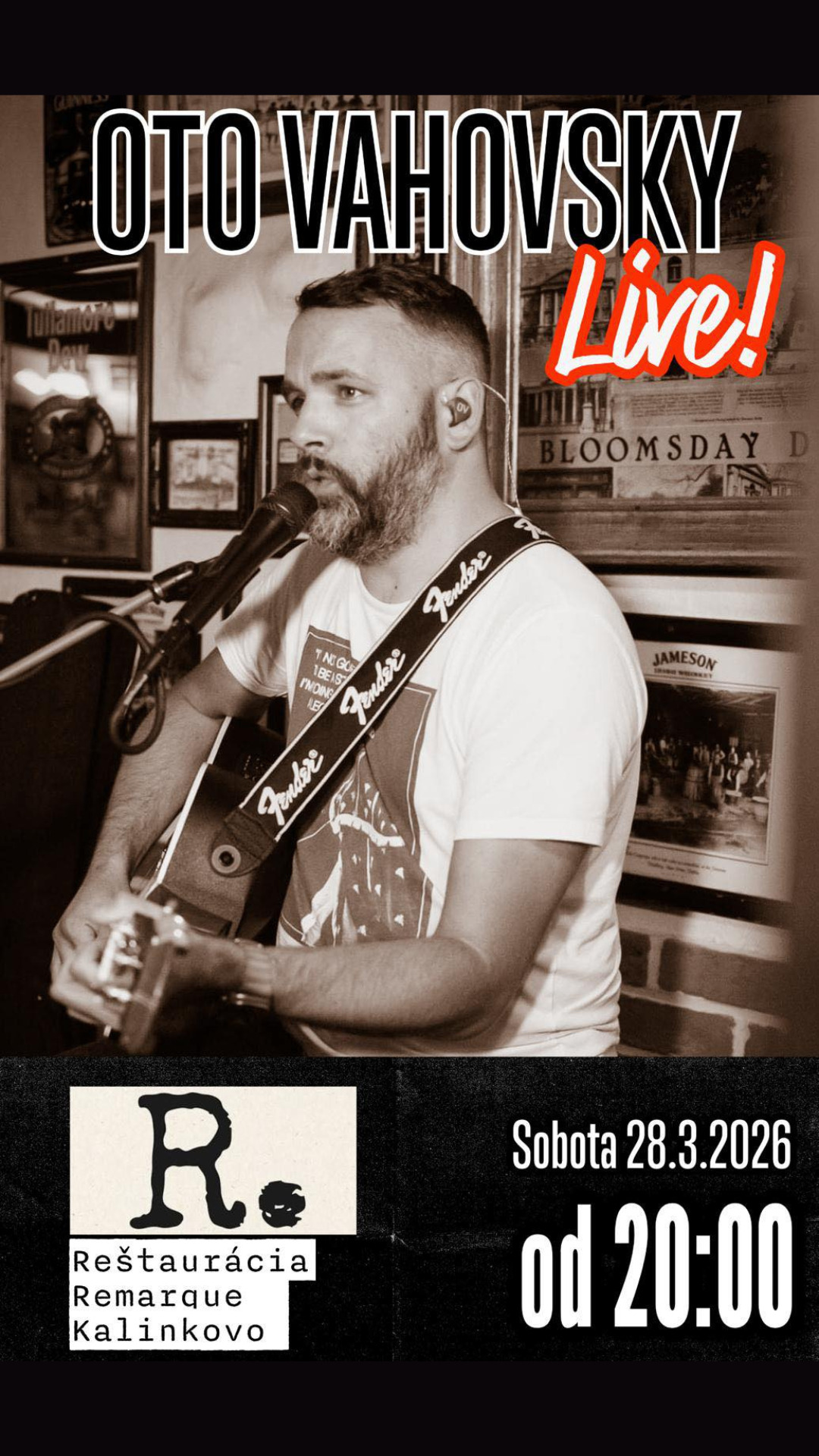 Priatelia, v sobotu 28.3.2026 k nám zavíta náš skvelý hudobník OTO VÁHOVSKÝ, mimochodom aj výborný redaktor televízie markíza. Príďte sa zabaviť!