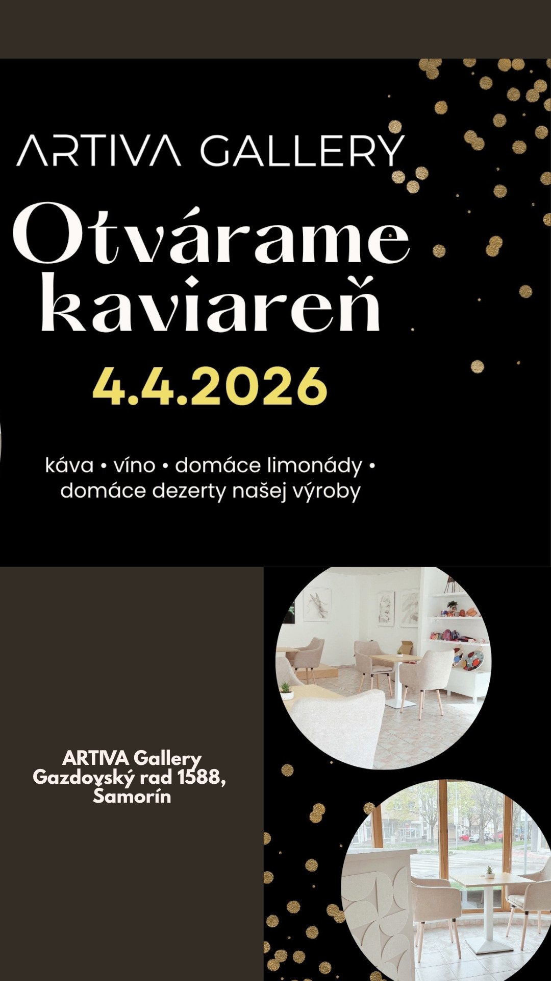 POZÝVAME VÁS NA OTVORENIE KAVIARNE V PRIESTORE VAŠEJ OBĽÚBENEJ ARTIVA GALLERY.