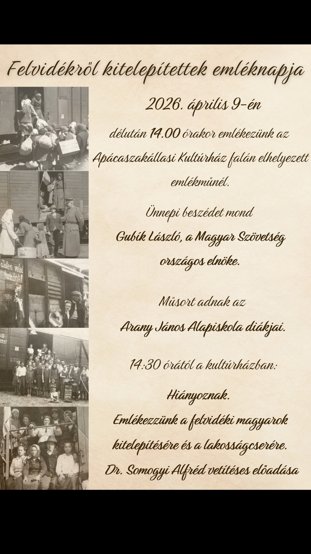 Pamätný deň vysídlených Maďarov z územia Československa.