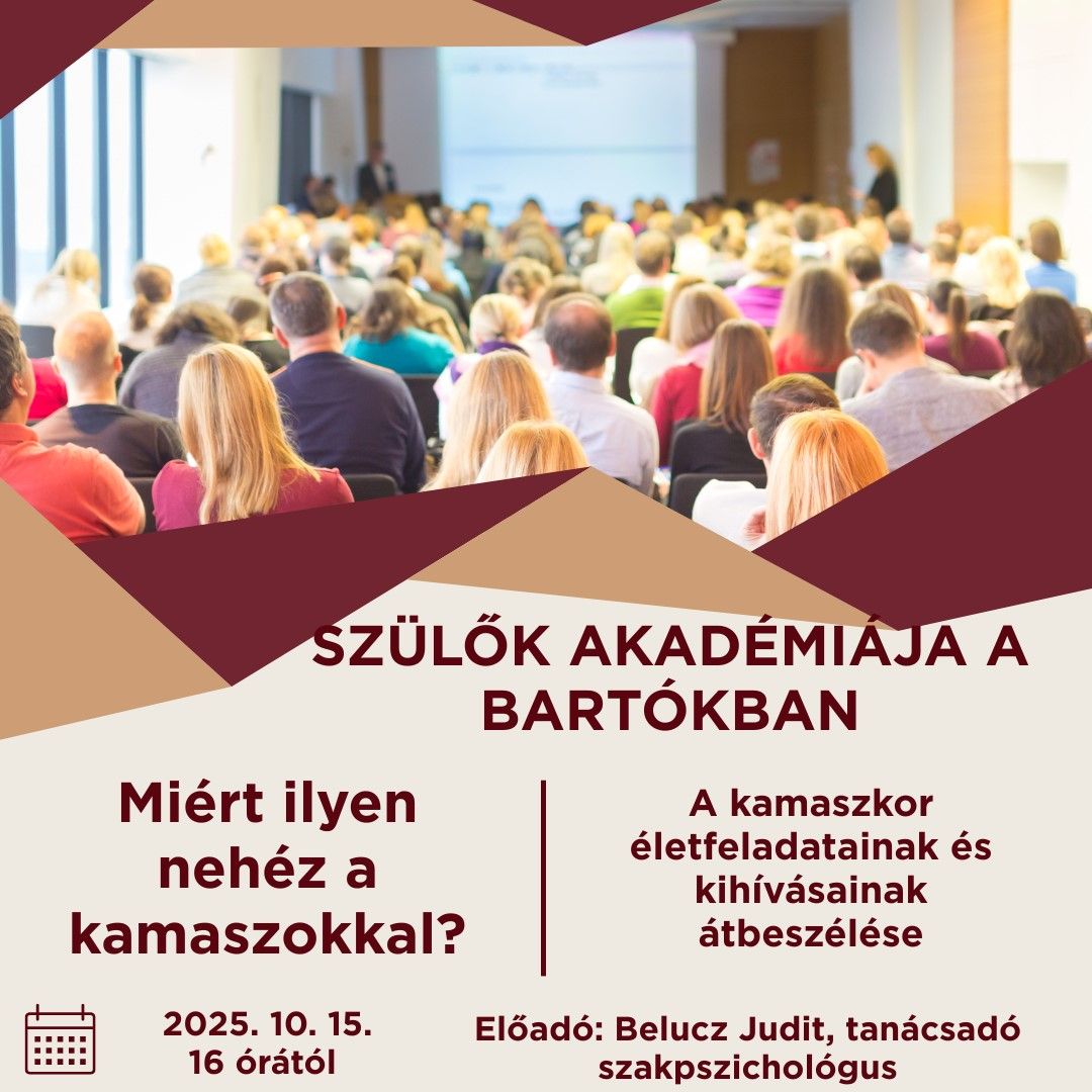 Prednáška na tému: Prečo je to s tínedžermi také ťažké? na ZŠ Bélu Bartóka s VJM. Udalosť v maďarskom jazyku.