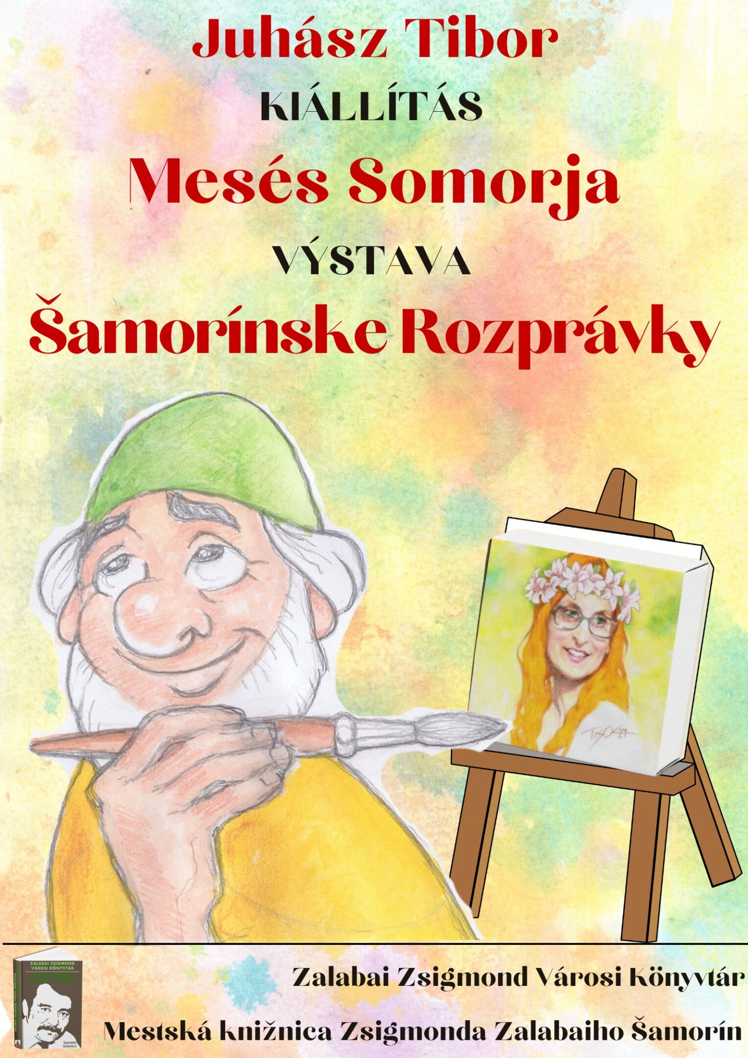 Výstava obrazov umelca Tibora Juhásza v Mestskej knižnici Zsigmonda Zalabaiho, ktoré sú ilustráciou knihy Šamorínske rozprávky.