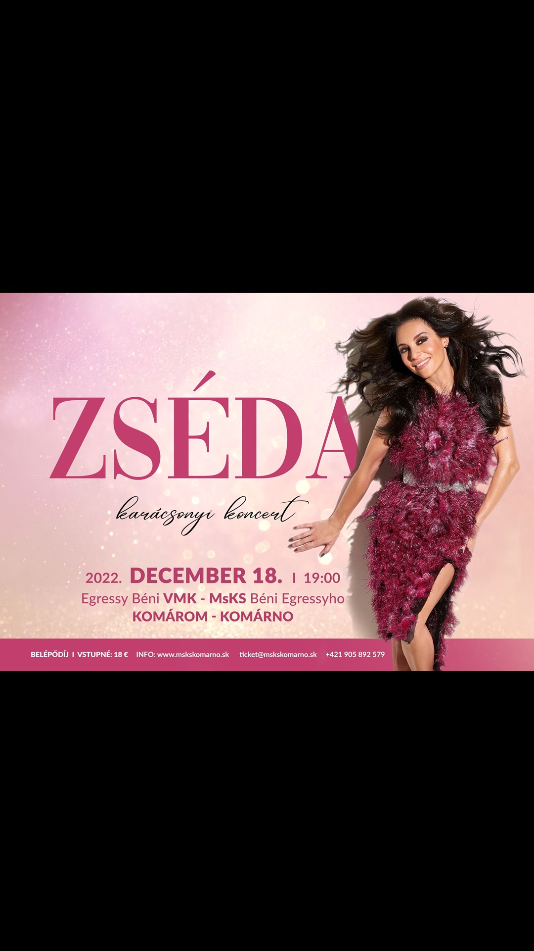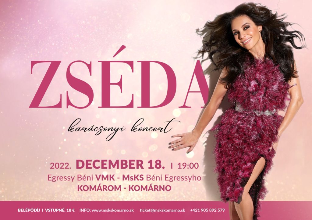 18. decembra 2022 v MsKS Béni Egressyho v Komárne od 19:00 vystupuje maďarská speváčka ZSÉDA – Zsédenyi Adrienn. Vstupné: 18€.
